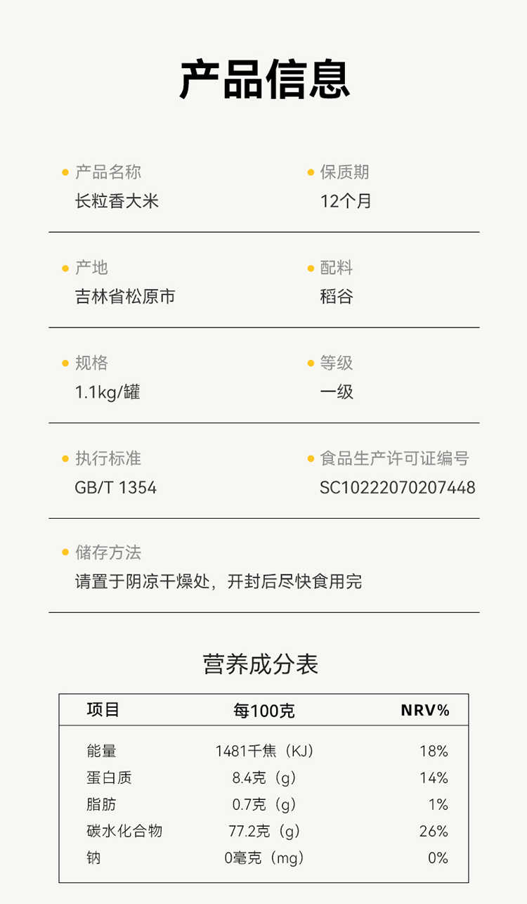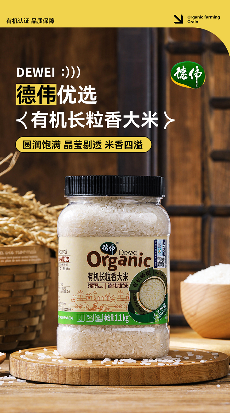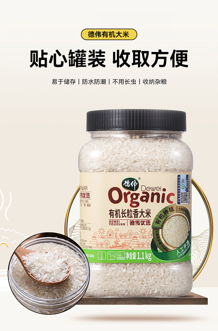 德伟(dewei) 长粒香大米 有机 1100g 白色(单位:罐)