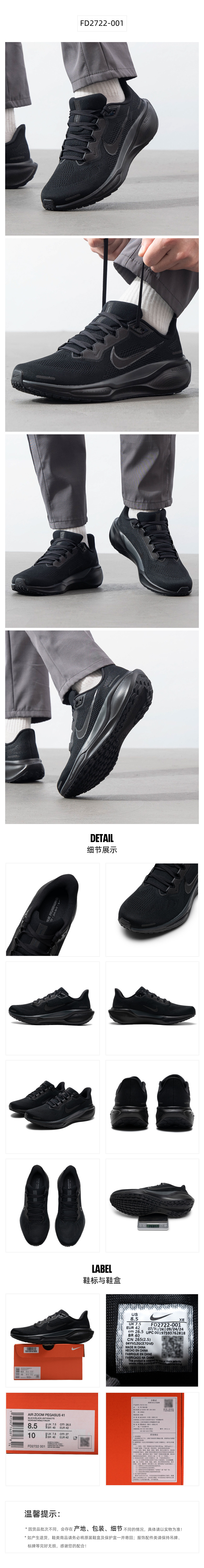 耐克(NIKE) 耐克男跑步鞋 FD2722-001 40.5 40.5 黑色(单位:双)