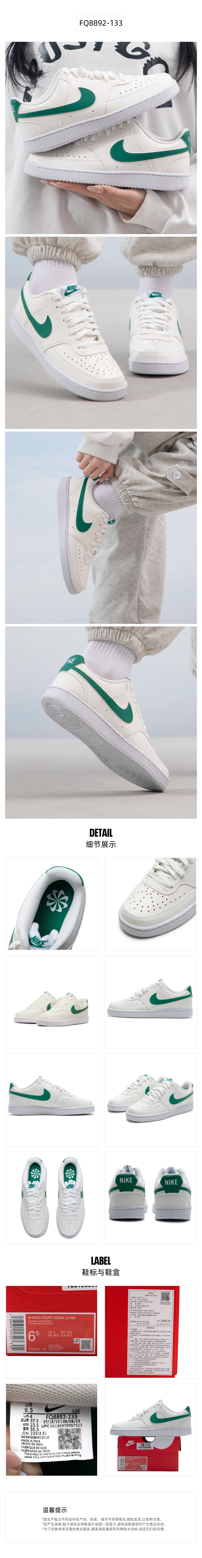 耐克(NIKE) 女低帮板鞋 FQ8892-133 36 36 白/孔雀绿/帆白(单位:双)