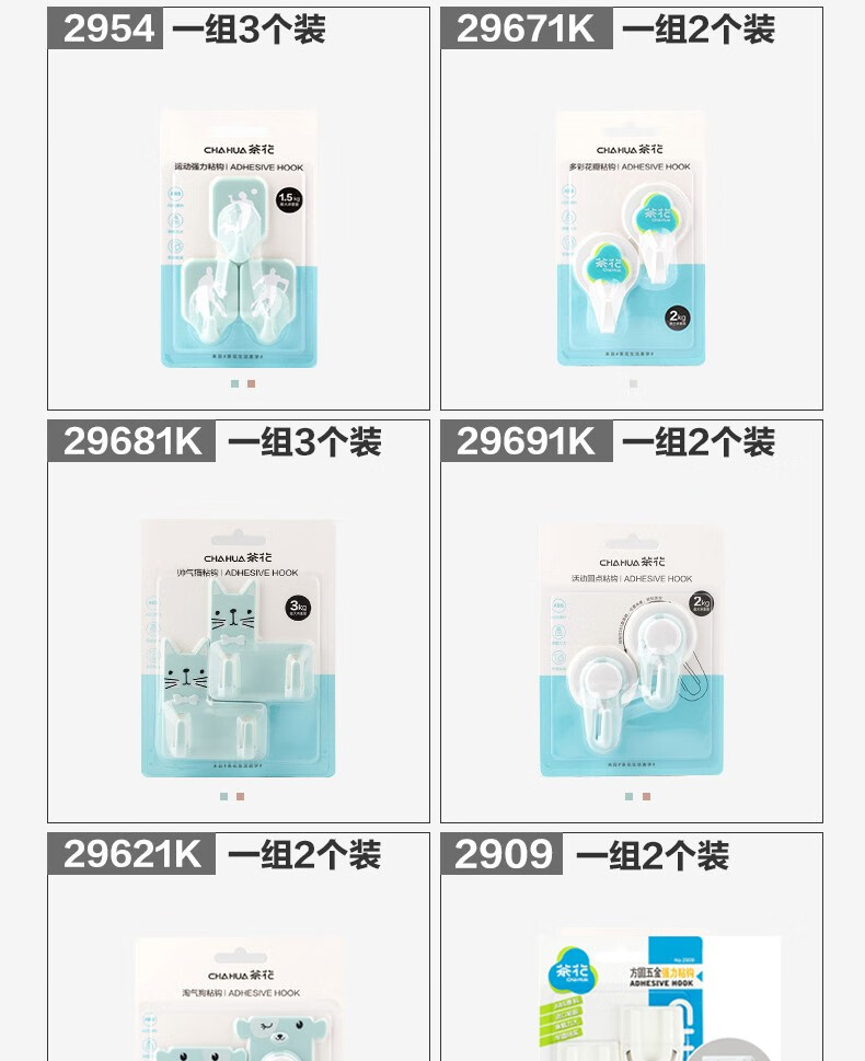 茶花(CHAHUA) 淘气狗粘钩 29621K 1组2个【6.6*8.1*2.2cm】 混色(单位:组)