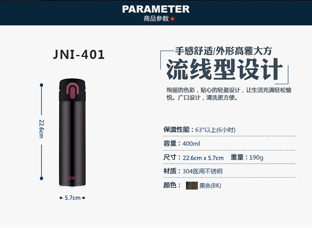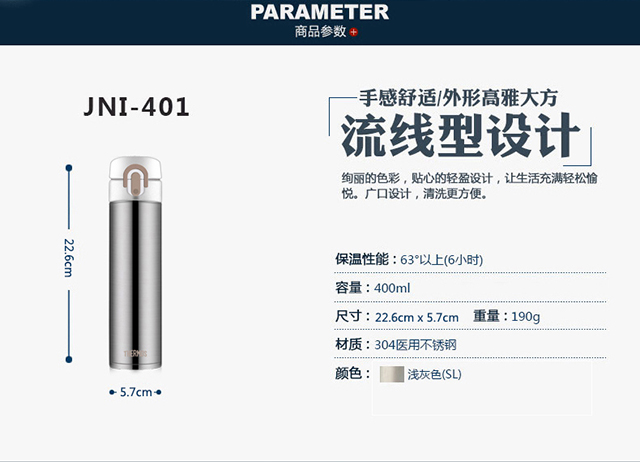 膳魔师高真空不锈钢保温杯JNI-401 银色