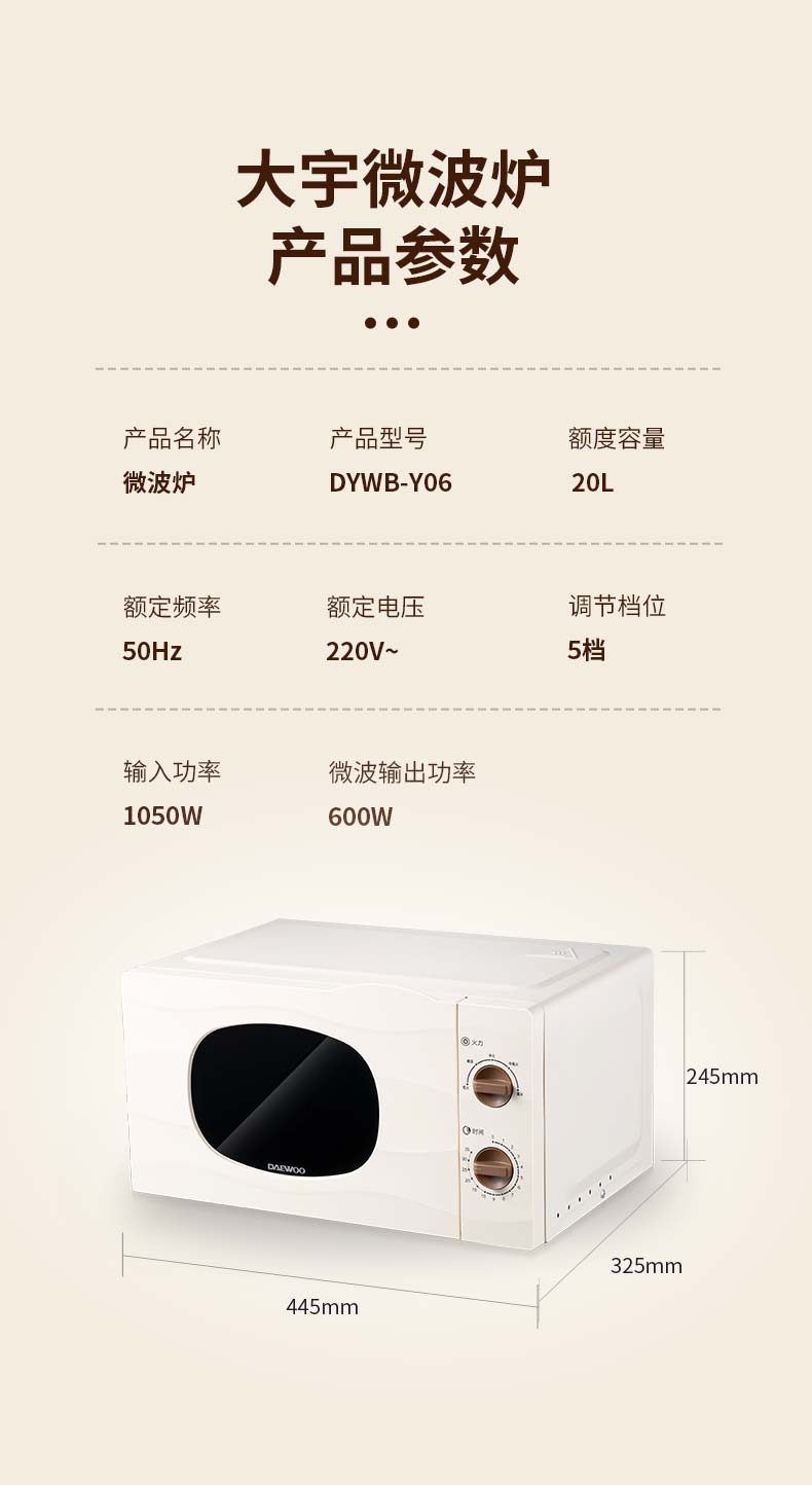 大宇(DAEWOO)20L容量机械旋钮微波炉 DYWB-Y06 单位(台) 白色