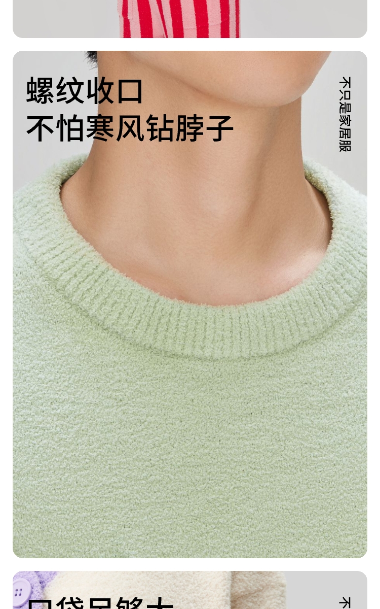 躺岛 半边绒保暖睡衣家居服套装 圆领套头款 L 薄荷绿+雾绿色(单位:套)