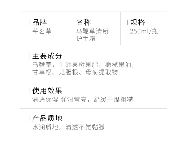 MAGEC芊茗草 马鞭草护手霜按压大瓶滋润保湿补水大容量春秋冬防干裂Q1020【250ml*2瓶】 规格