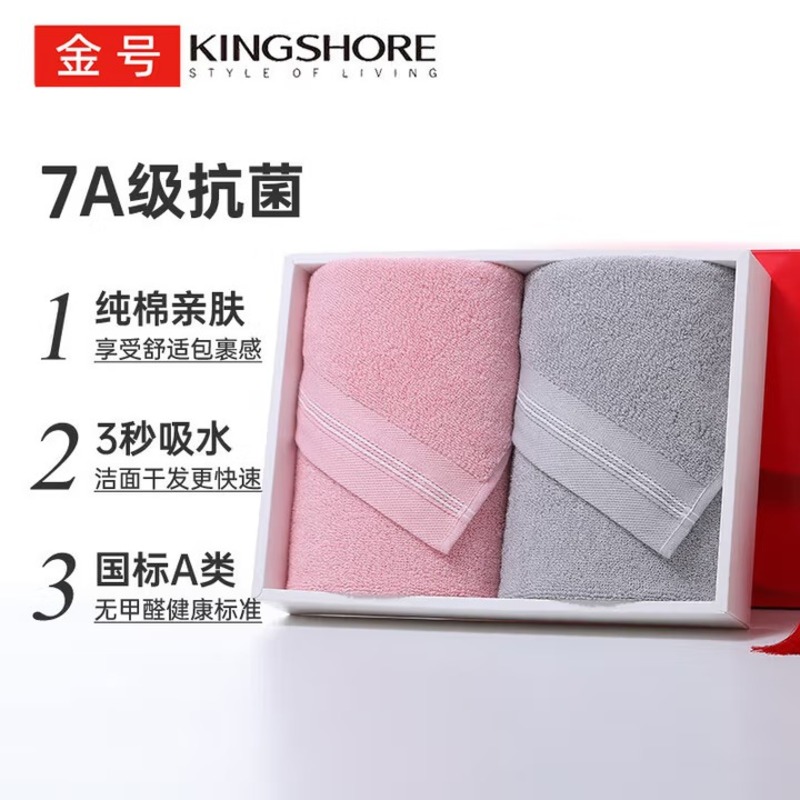金号(KING SHORE) 7A抗菌毛巾套装 01KA0271A1 72*34.5cm*2条 混色(单位:盒)
