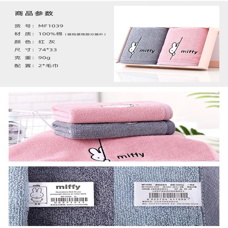 金号(KING SHORE) 抗菌纯棉毛巾米菲礼盒 MF1039 毛巾*2 混色(单位:盒)