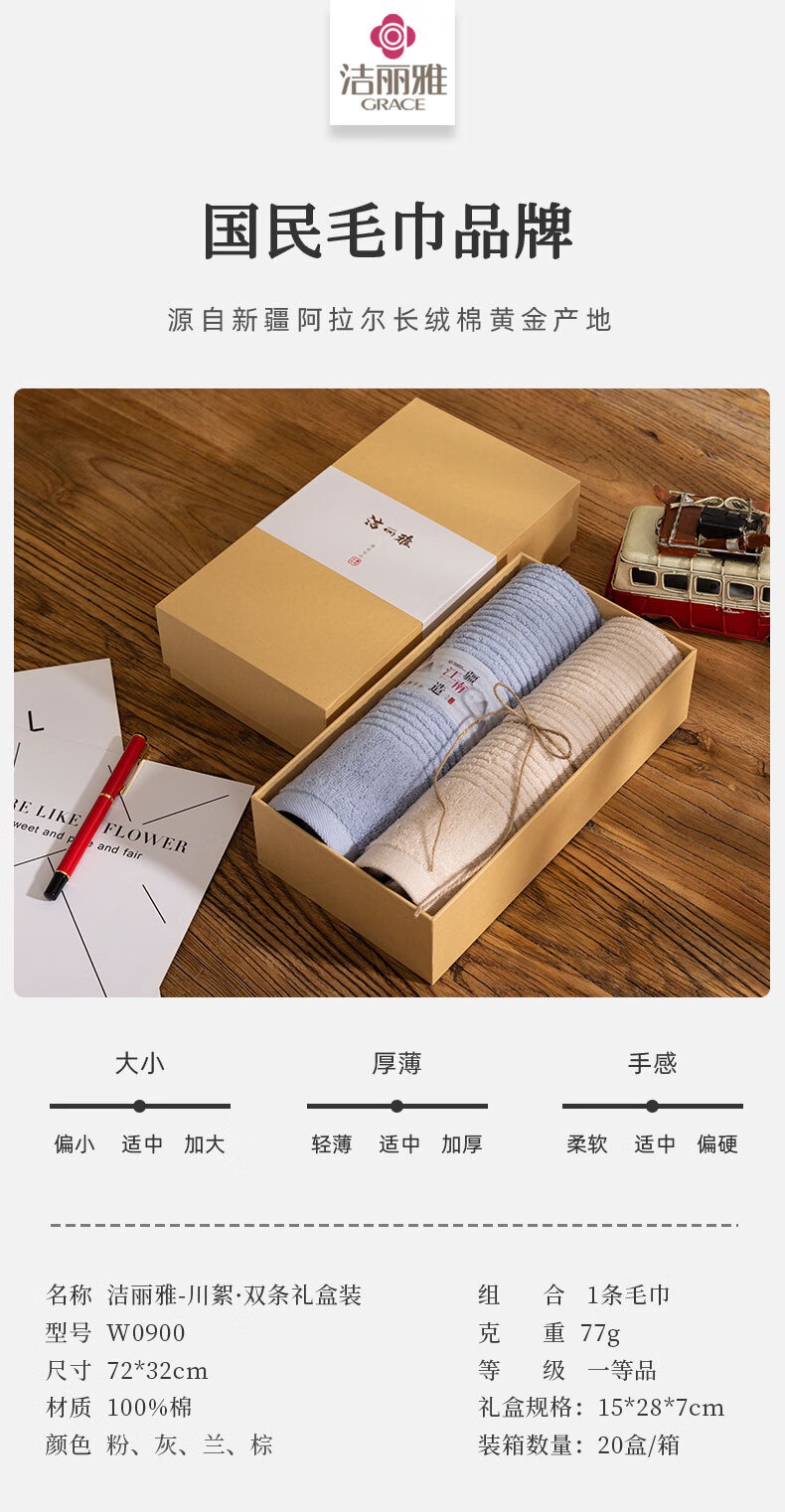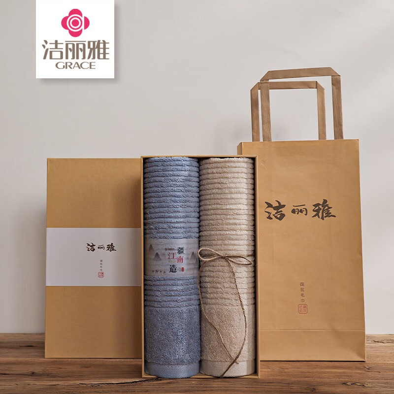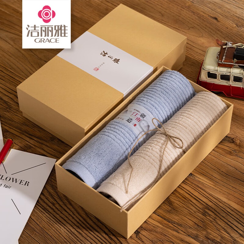洁丽雅(Grace) 川絮毛巾双条礼盒装 W0900 毛巾*2 混色(单位:盒)