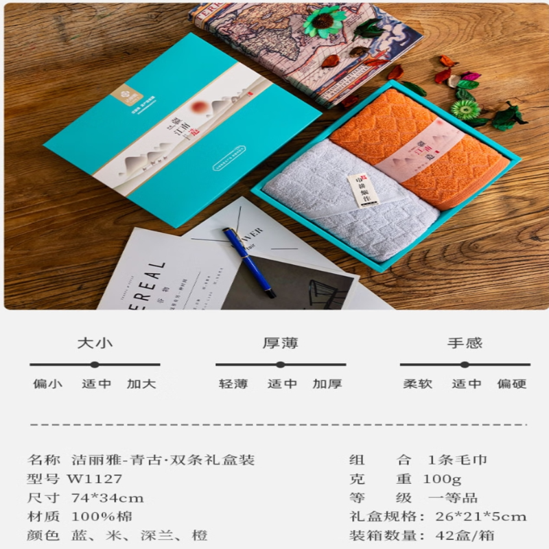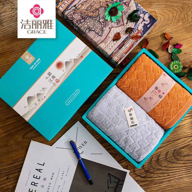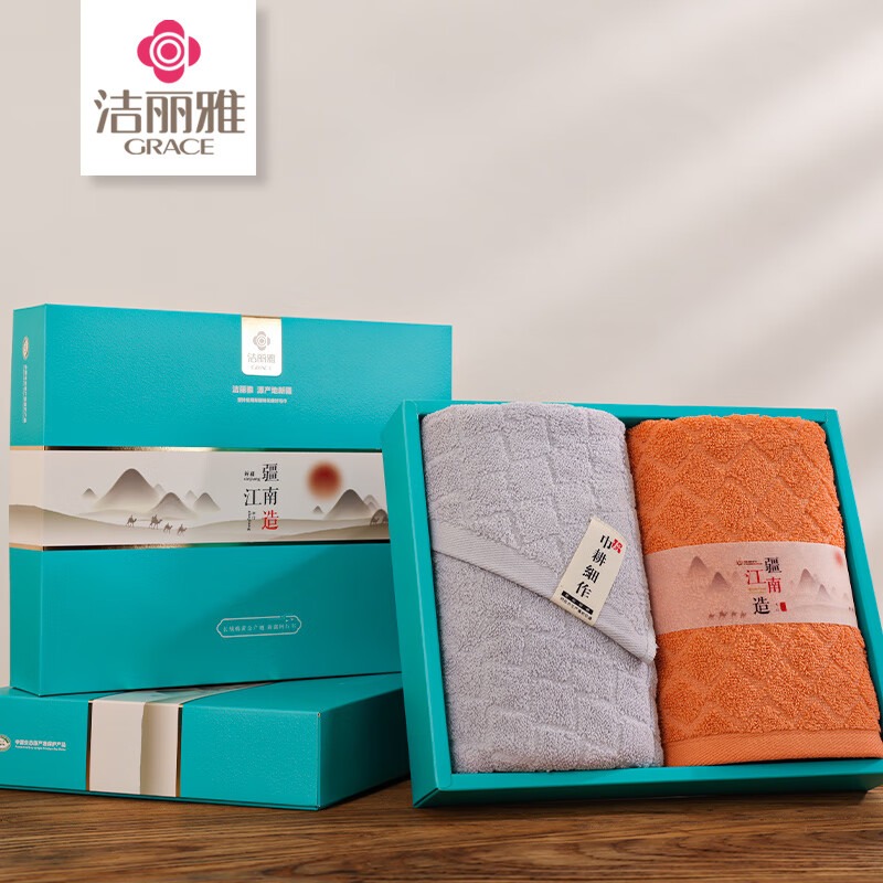 洁丽雅(Grace) 青古毛巾双条礼盒装 W1127 毛巾*2 混色(单位:盒)