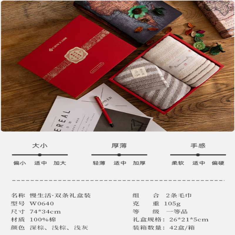 洁丽雅(Grace) 慢生活毛巾双条礼盒装 W0640 毛巾*2 混色(单位:盒)