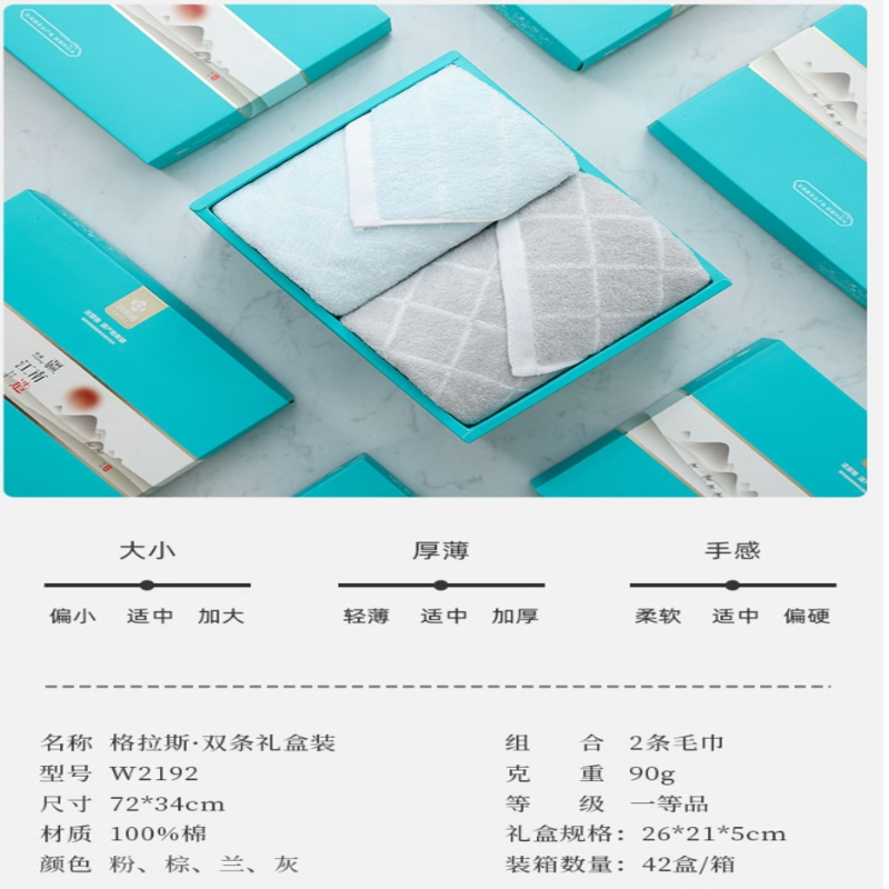 洁丽雅(Grace) 格拉斯毛巾双条礼盒装 W2192 毛巾*2 混色(单位:盒)