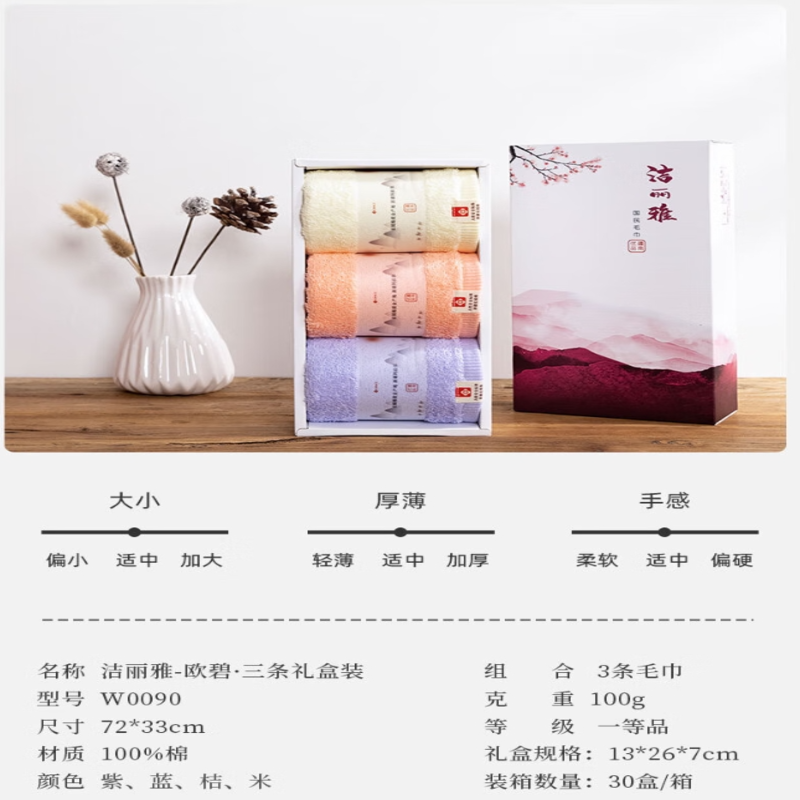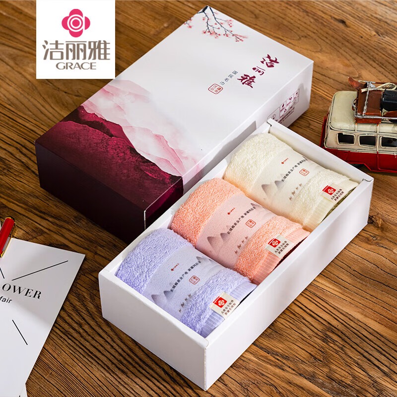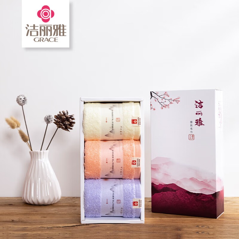 洁丽雅(Grace) 欧碧毛巾三条礼盒装 W0090 72*33cm*3条 混色(单位:盒)