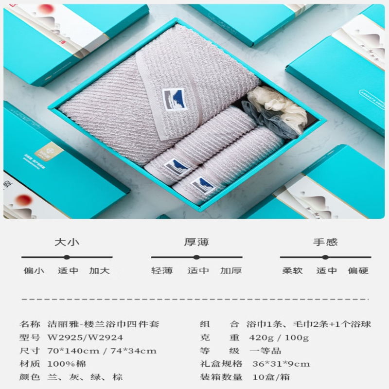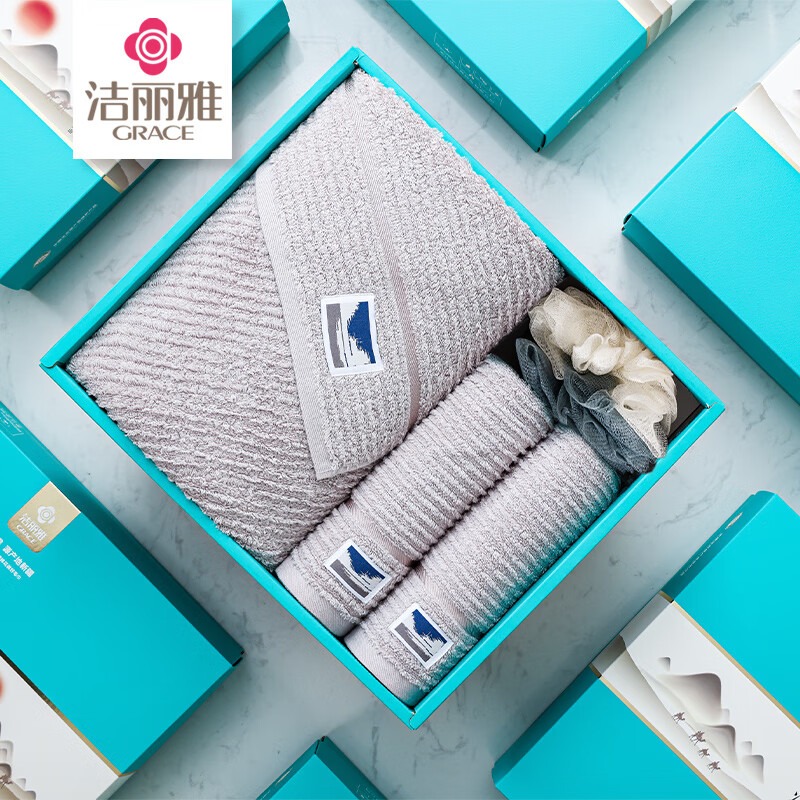 洁丽雅(Grace) 楼兰毛巾洗浴套装 W2925+W2924 毛巾*2+浴巾*1+浴球*1 混色(单位:盒)