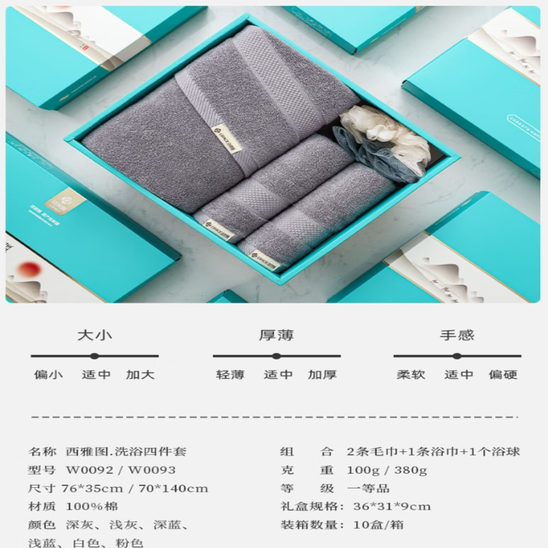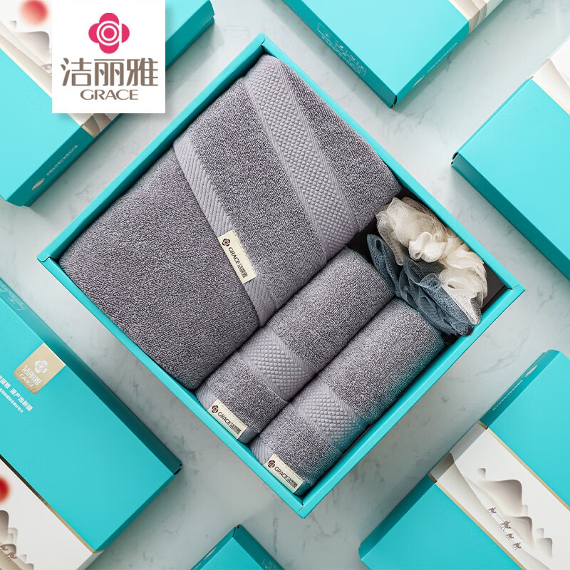 洁丽雅(Grace) 西雅图毛巾洗浴套装 W0092+W0093 毛巾*2+浴巾*1+浴球*1 混色(单位:盒)