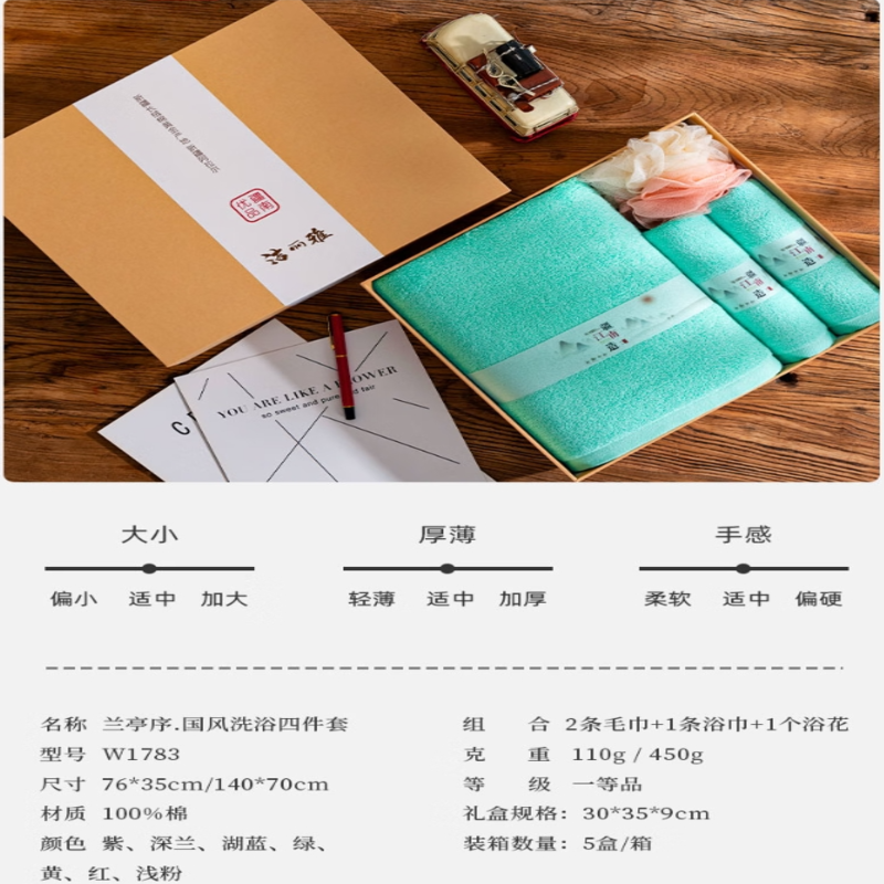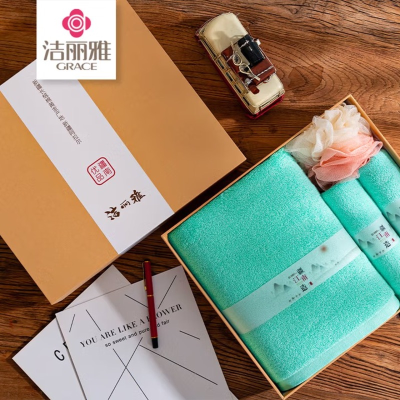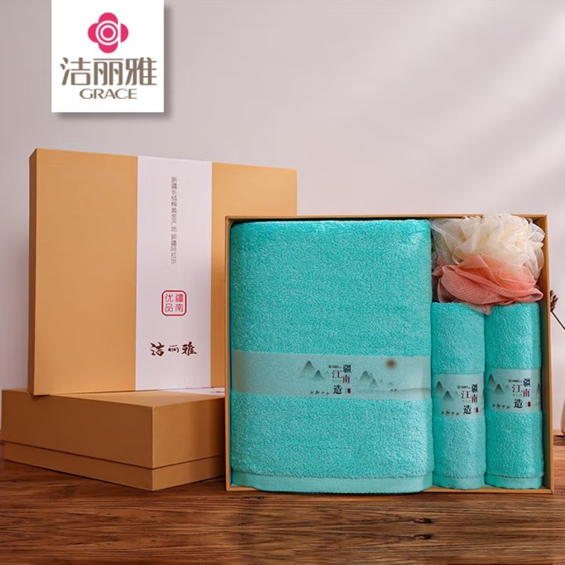 洁丽雅(Grace) 兰亭序毛巾洗浴套装 W1783+W1784 毛巾*2+浴巾*1+浴花*1 混色(单位:盒)