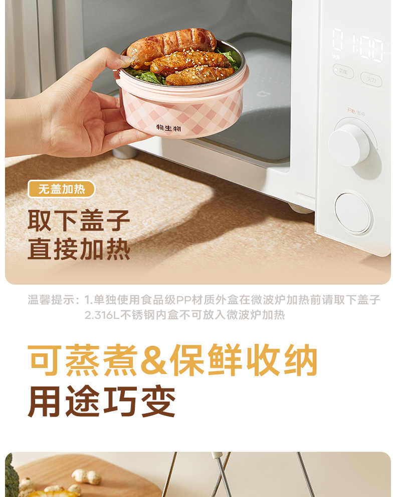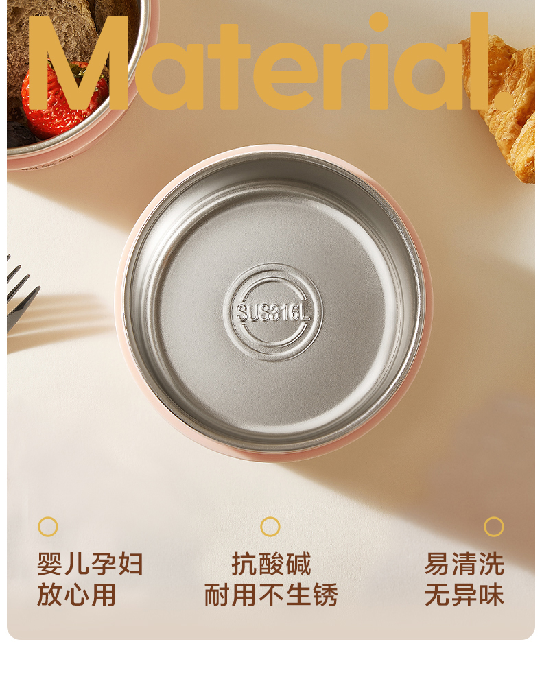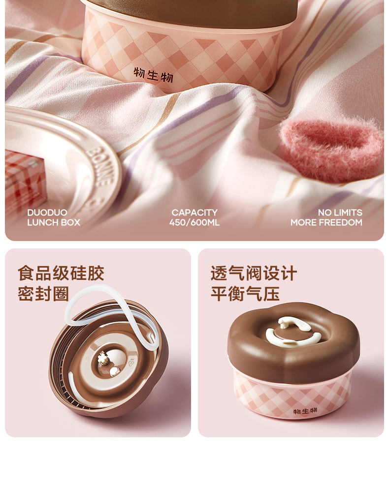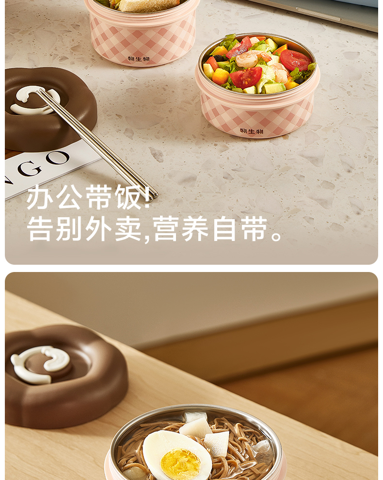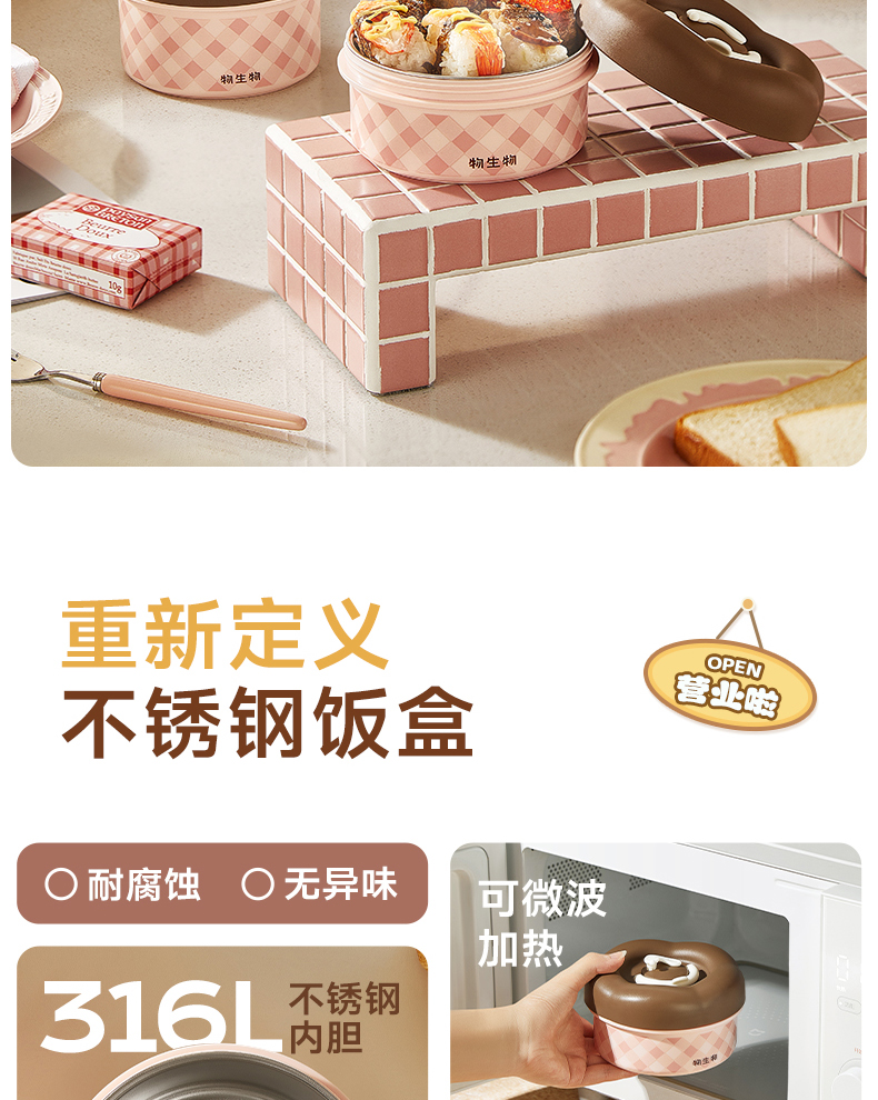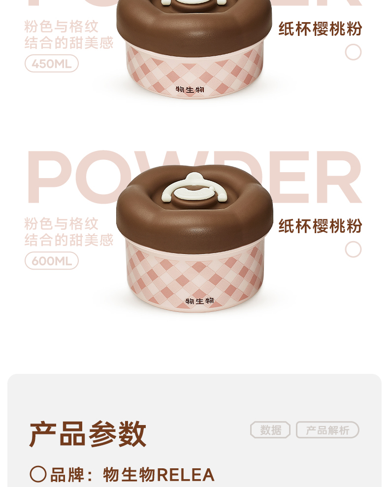物生物(RELEA) 朵朵派不锈钢饭盒 JV042501-0600-FS00 600ML 纸杯樱桃粉(单位:个)
