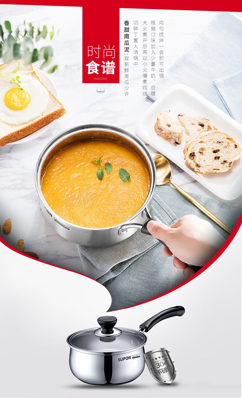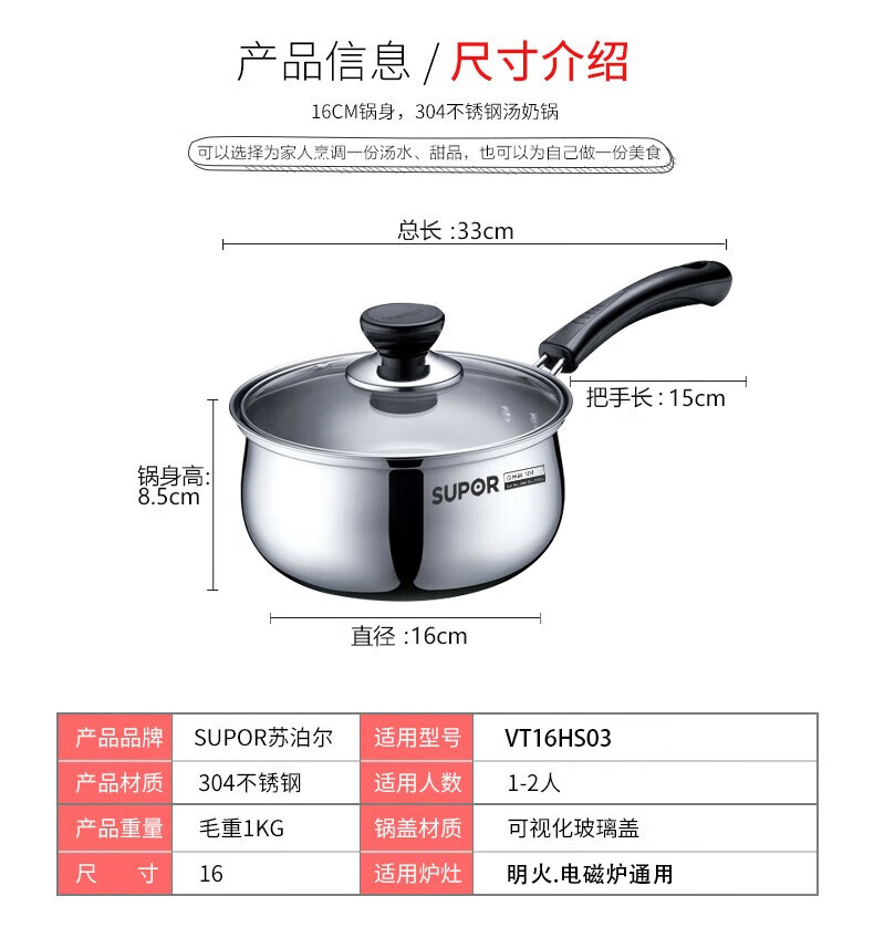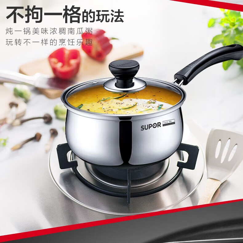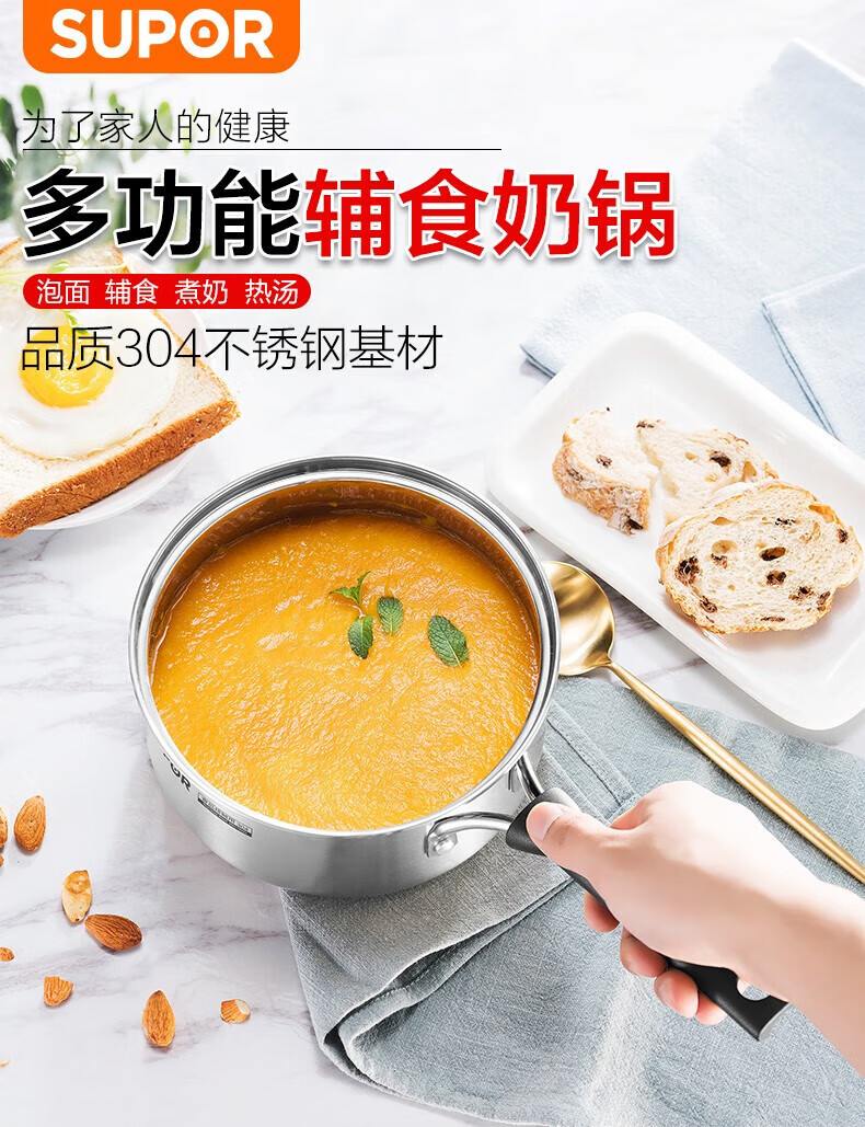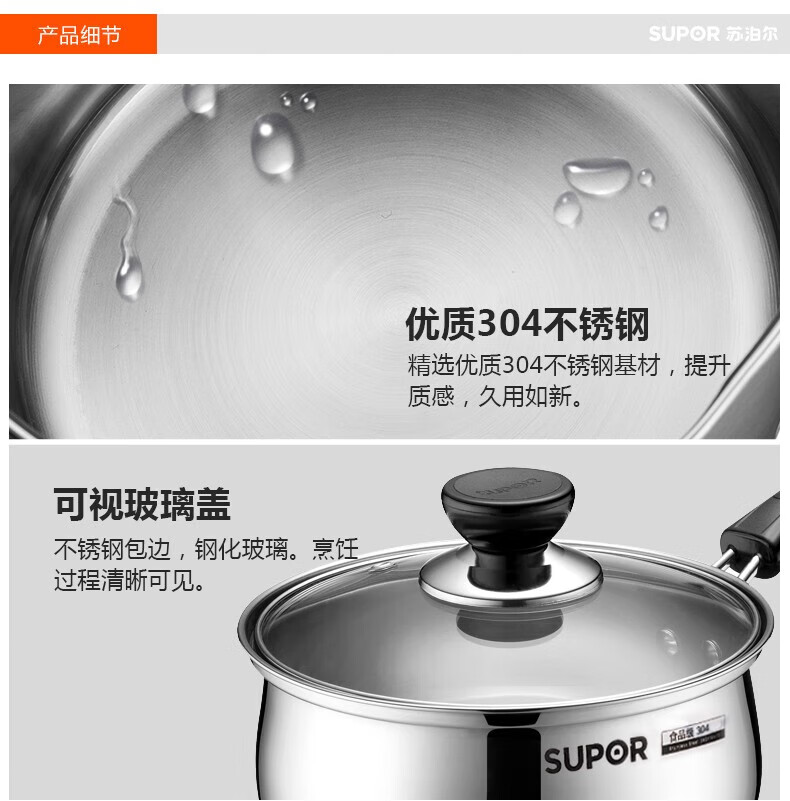 苏泊尔(SUPOR) 好帮手不锈钢单底奶锅1.3L VT16HS03 16CM 银色(单位:个)