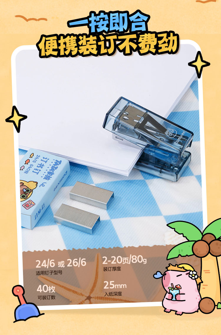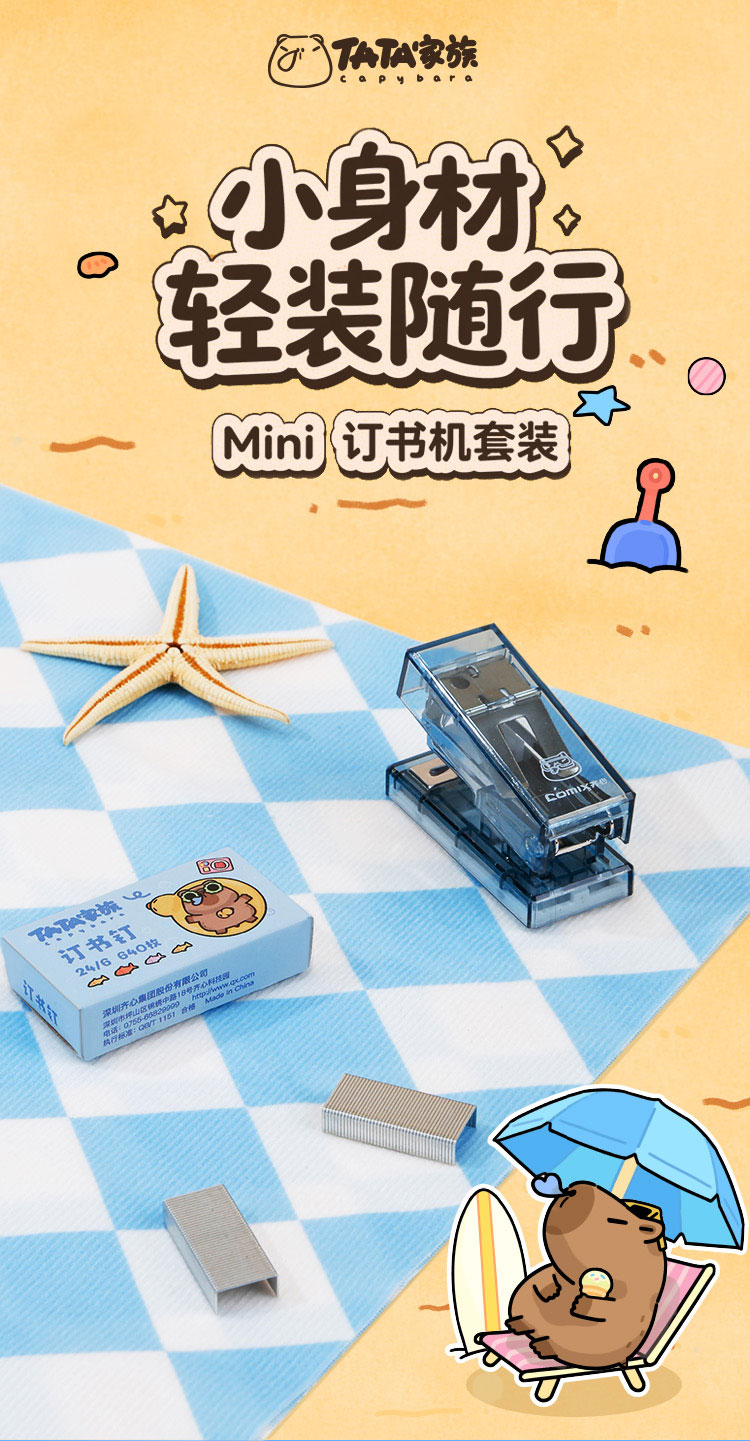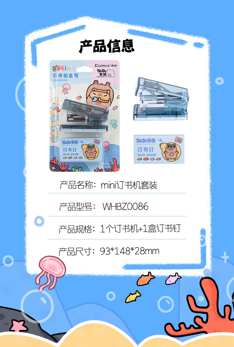 齐心(COMIX) Mini订书机套装 WHBZ0086 93*148*28mm 混色(单位:套)