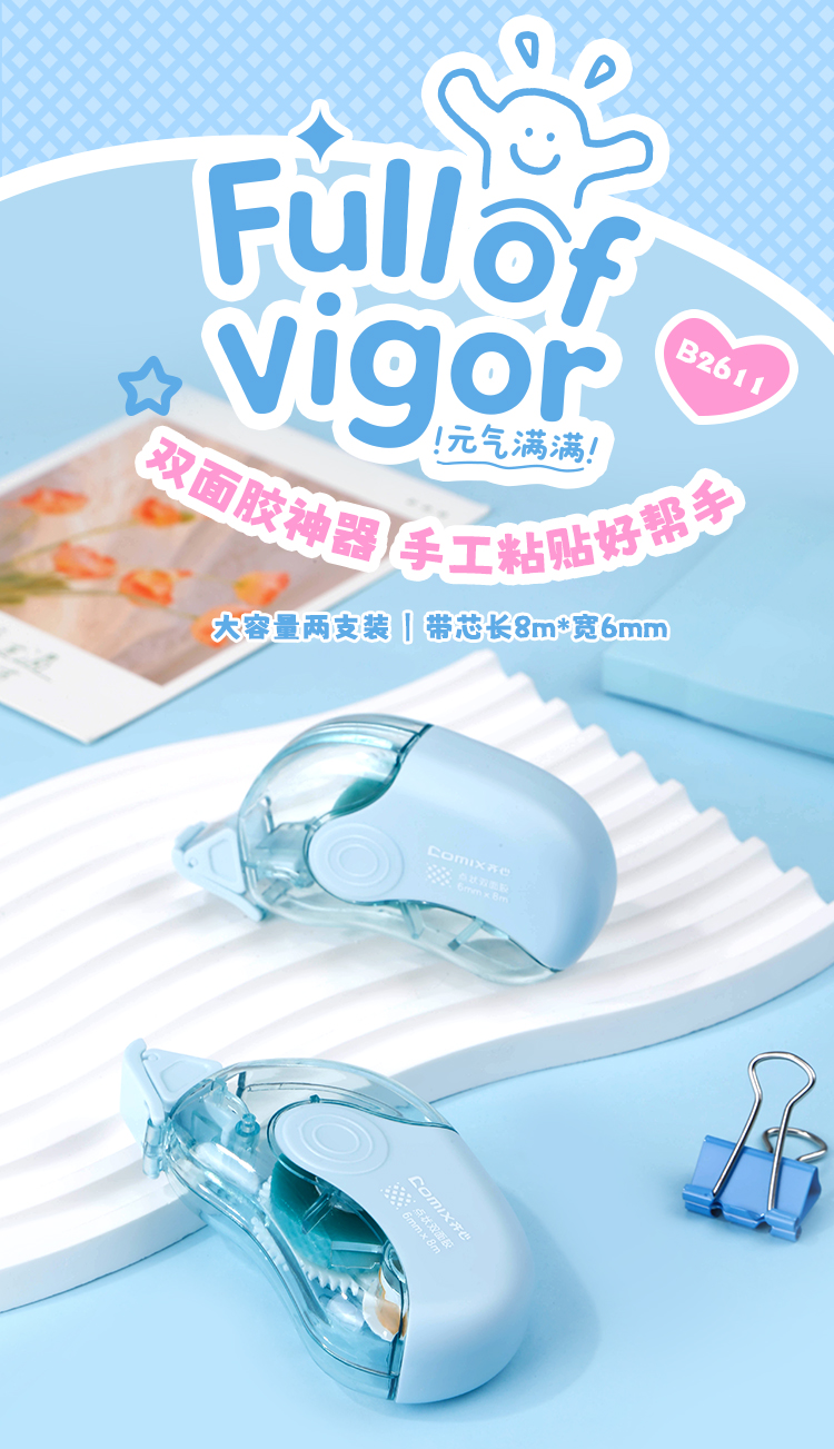 齐心(COMIX) 点状双面胶 B2611 2支 薄荷蓝(单位:卡)