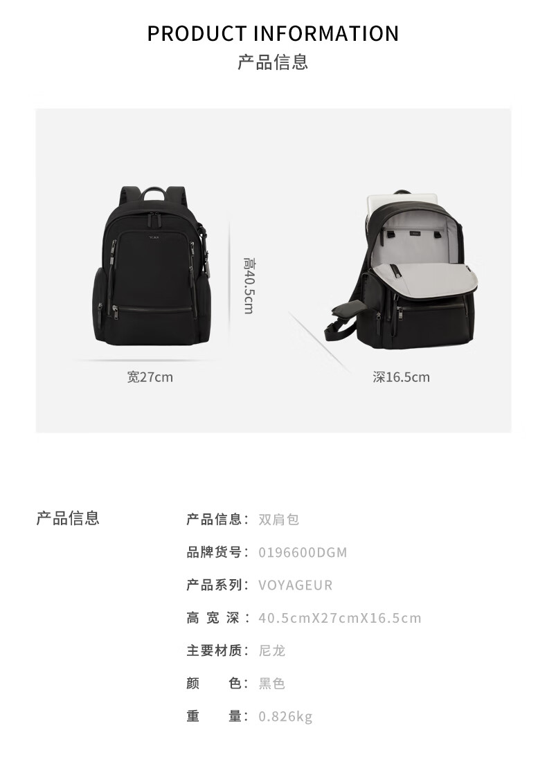 途明(TUMI) Voyageur女士双肩包通勤休闲易搭双肩包 0196600DGM 40.5cmX27cmX16.5cm 黑色(单位:个)