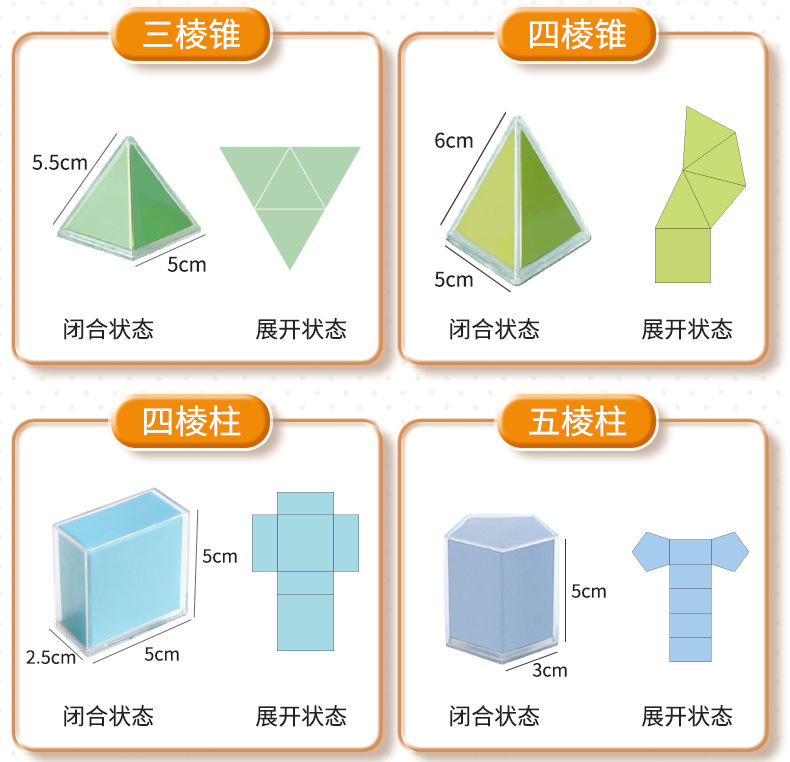 童益星 透明立体几何(带展开图) JYB-121 8件套 混色(单位:盒)