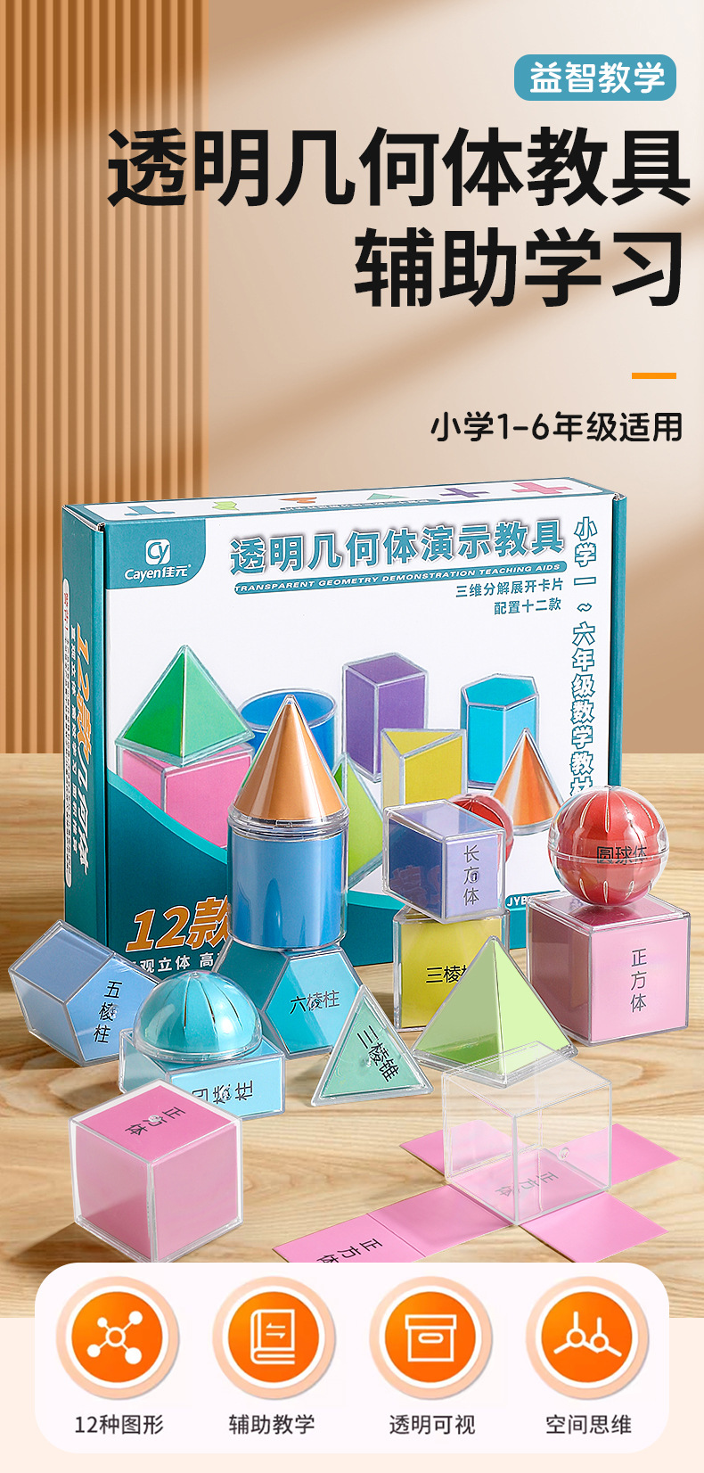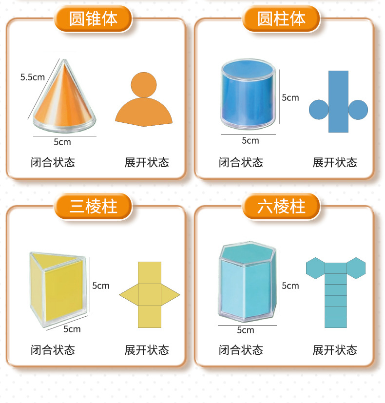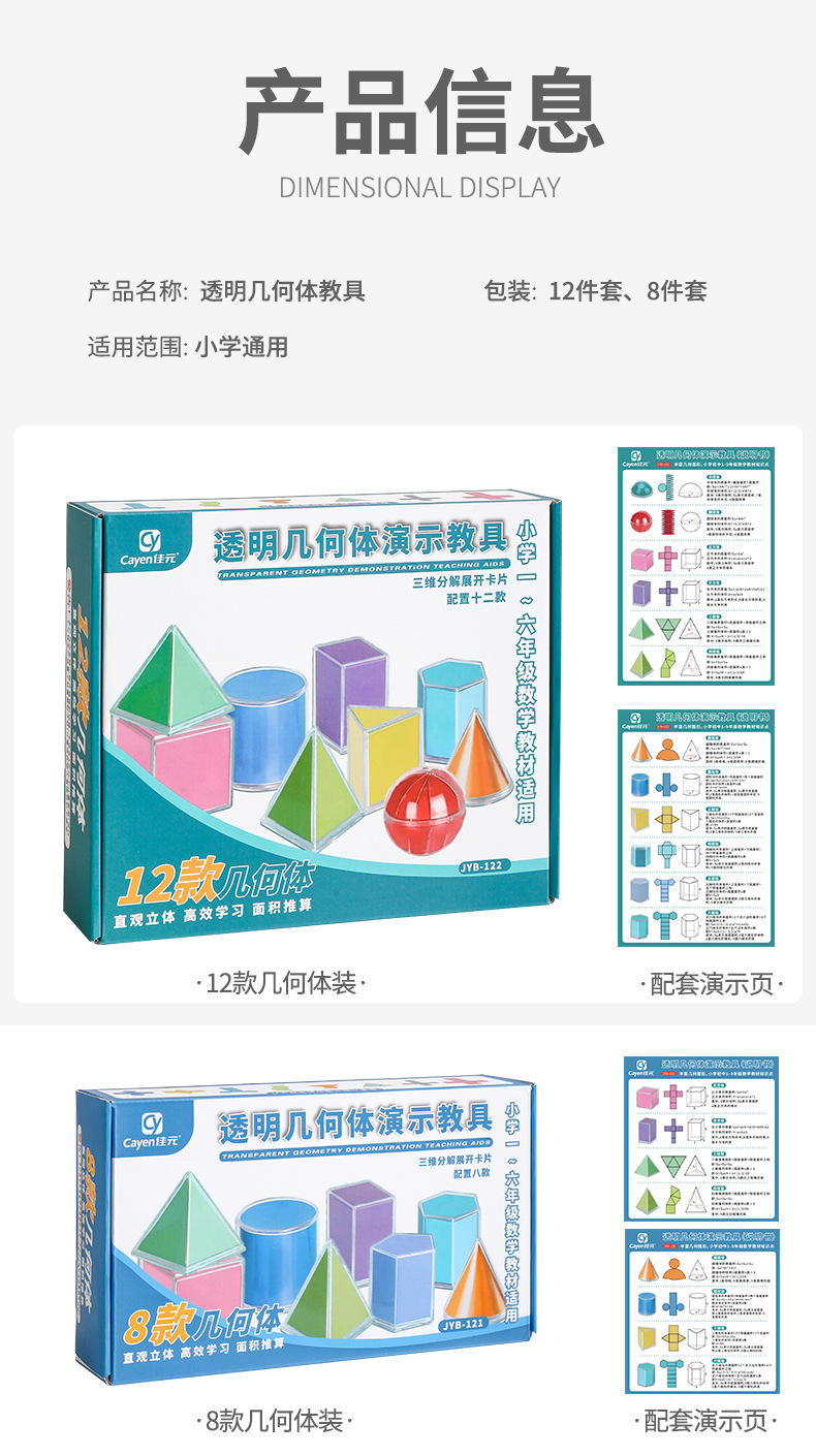 童益星 透明立体几何(带展开图) JYB-122 12件套 混色(单位:盒)