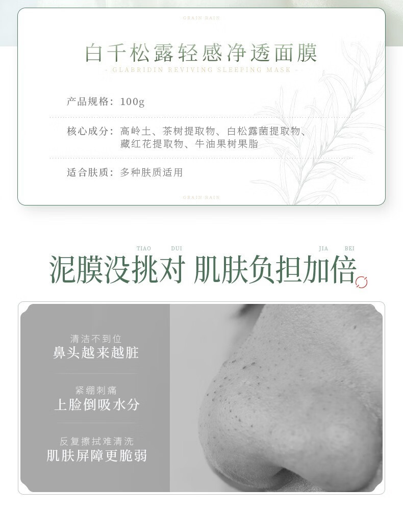 谷雨白千松露轻感净透面膜100g 绿色