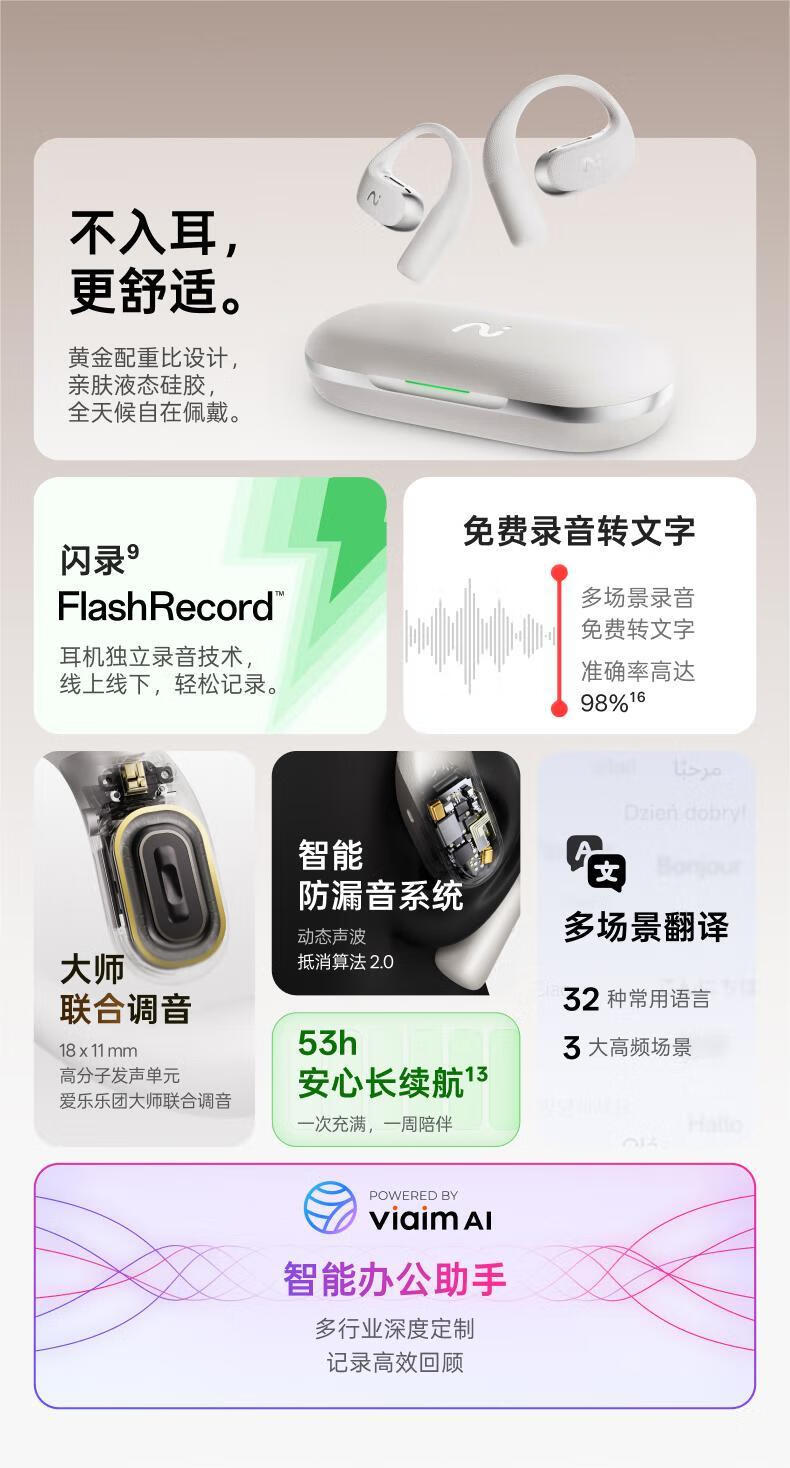 科大讯飞(iFLYTEK) 开放式AI会议耳机 AIR2 XFVI-E08 11*16*4cm 灰色(单位:副)