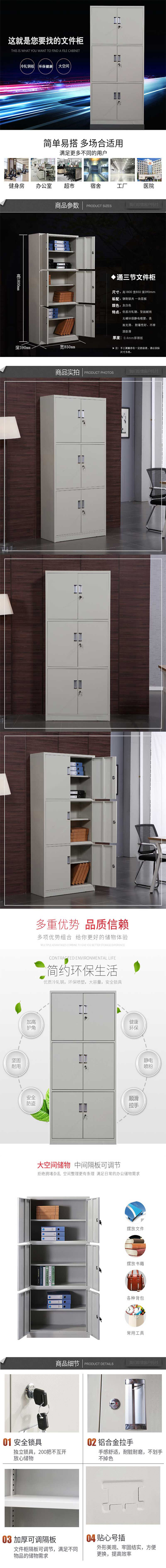 企诺 办公室铁皮文件柜通三节柜 QNGa06A1-04PA 850*390*1800mm|0.35mm 灰白色(单位:个)