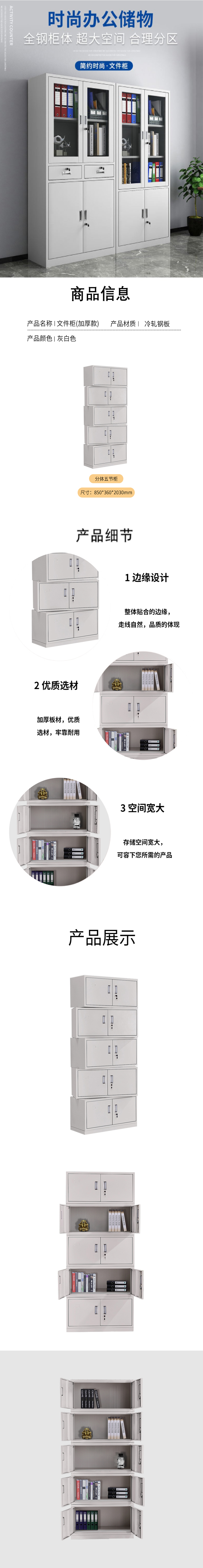 企诺 办公室铁皮文件柜分体五节柜 QNGa09A1-05PA 850*360*2030mm|0.5mm 灰白色(单位:个)