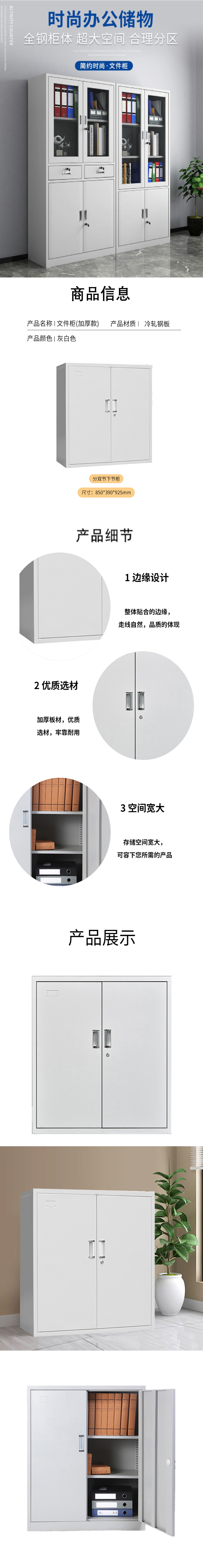 企诺 办公文件柜档案柜矮柜分双节下节柜 QNGa16A1-05PA 850*390*925mm|0.5mm 灰白色(单位:个)