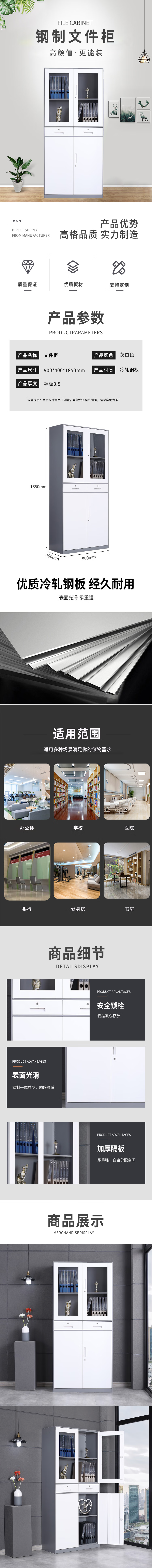 企诺 中二斗柜加厚套色 QNGa10A1-05GW 900*400*1850mm|0.5mm 灰白色(单位:个)