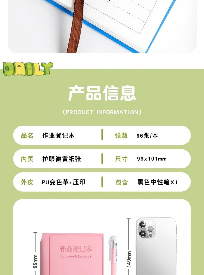 童益星 作业登记本-含随身笔一支 A0589BM 1本/96张 绿色(单位:本)