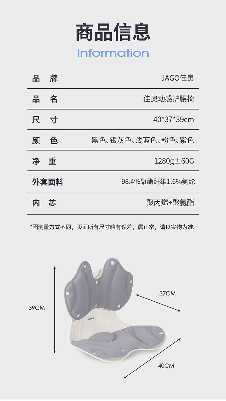 佳奥(JAGO) 动感护腰椅 242104J3100LR4 40*37*39cm 粉红色(单位:个)