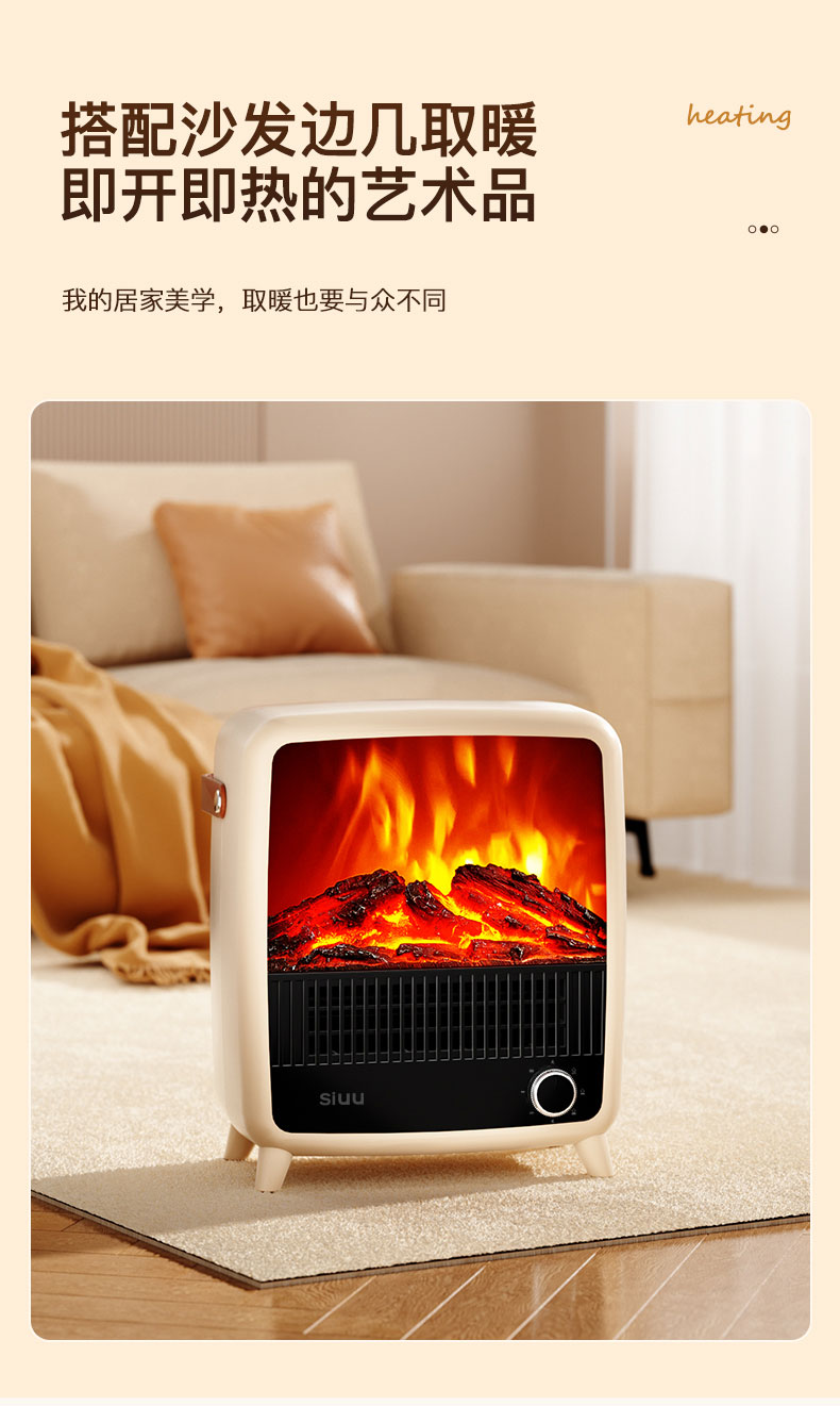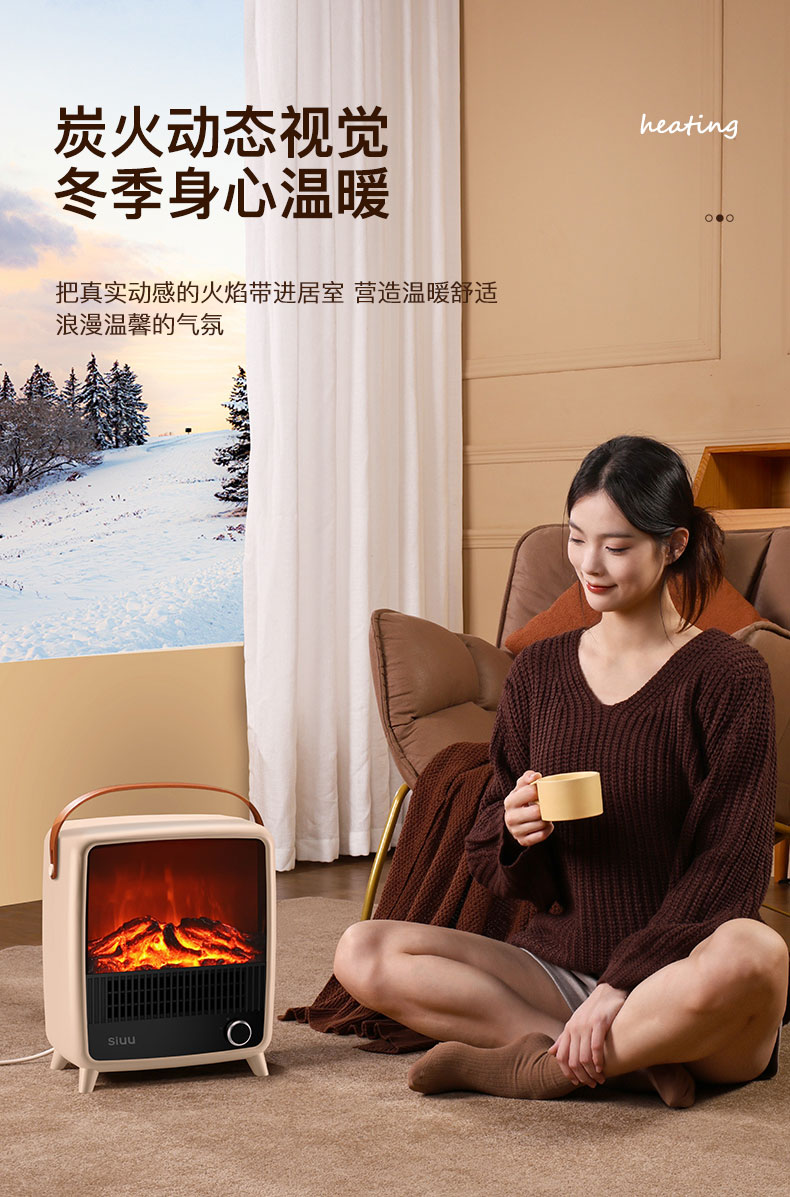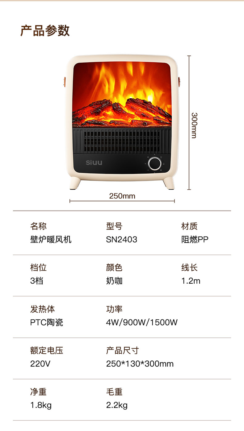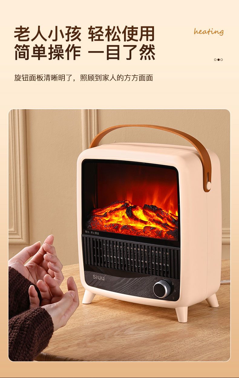 西佑 仿真火焰静音自带提手取暖器 机械款 SN2403 1500W 奶咖(单位:台)