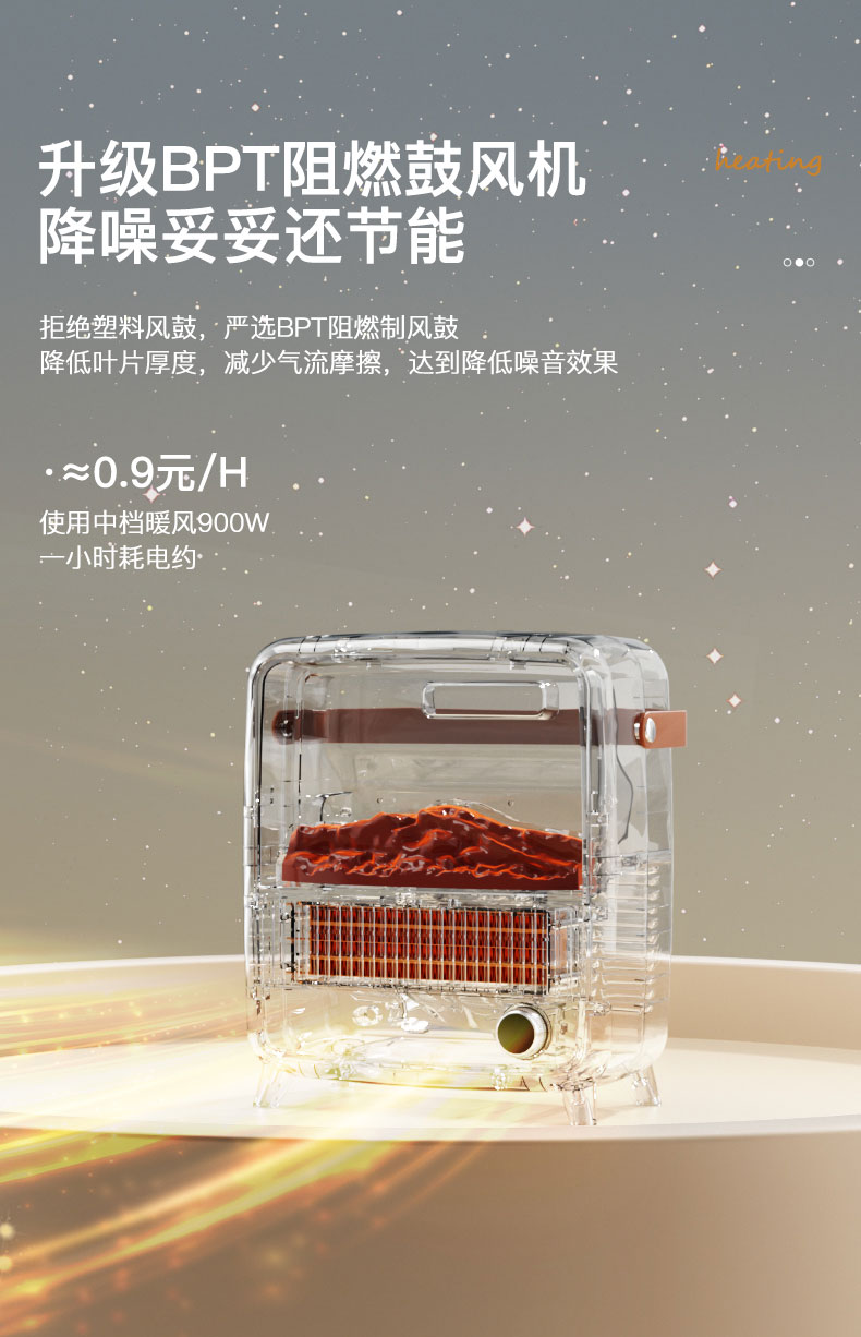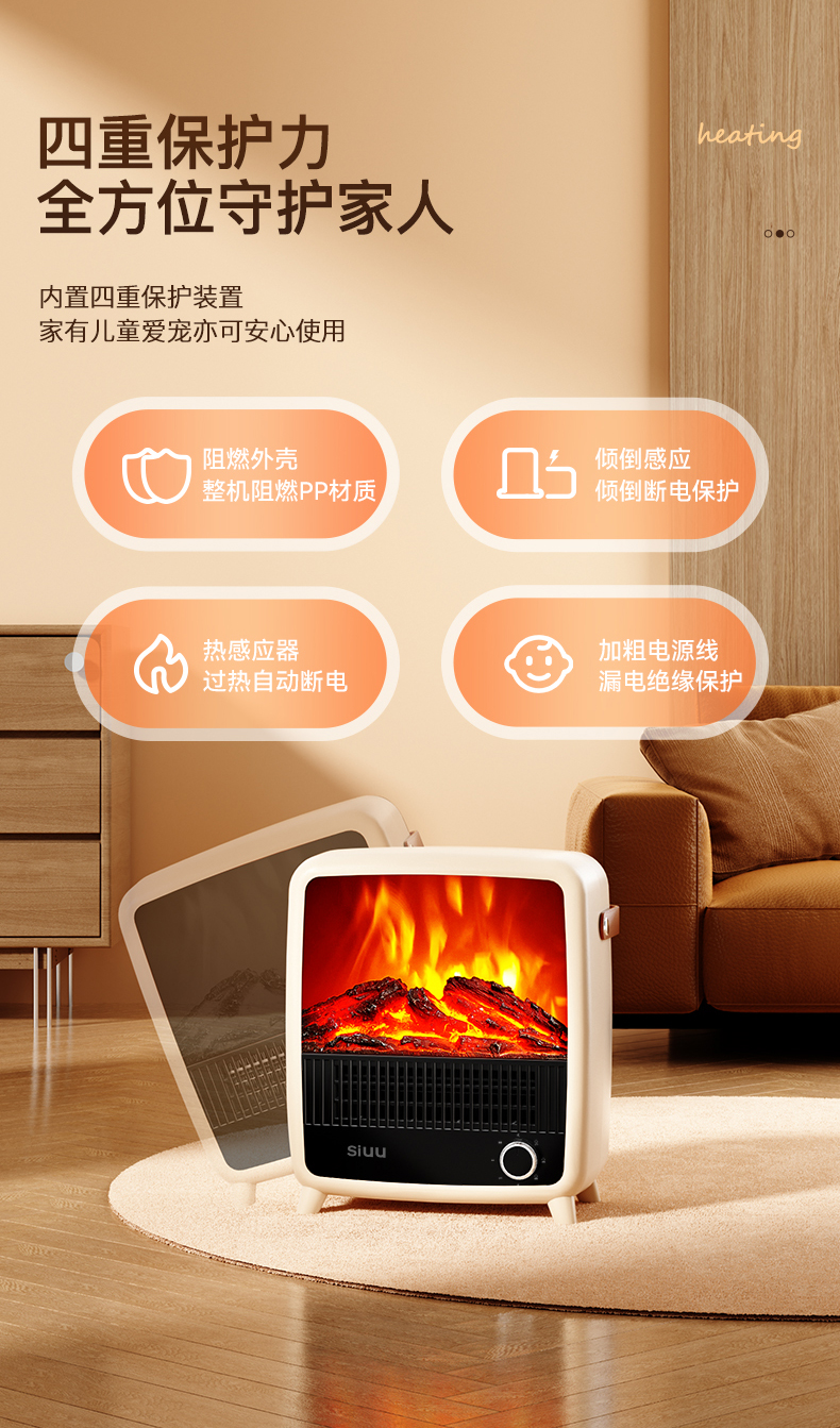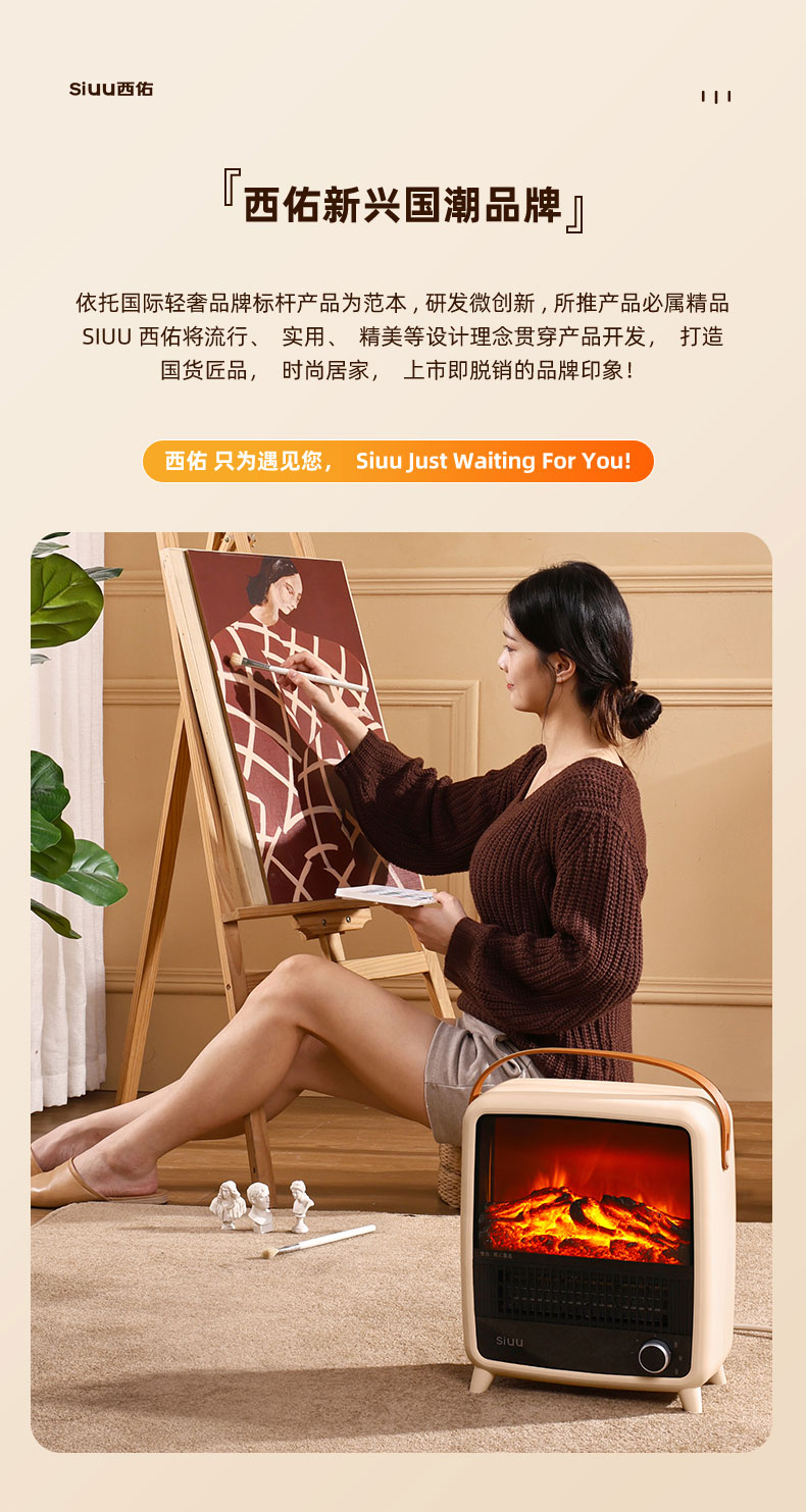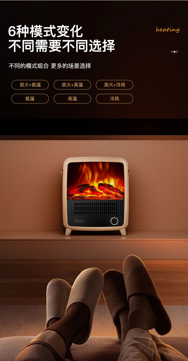 西佑 仿真火焰静音自带提手取暖器 机械款 SN2403 1500W 奶咖(单位:台)