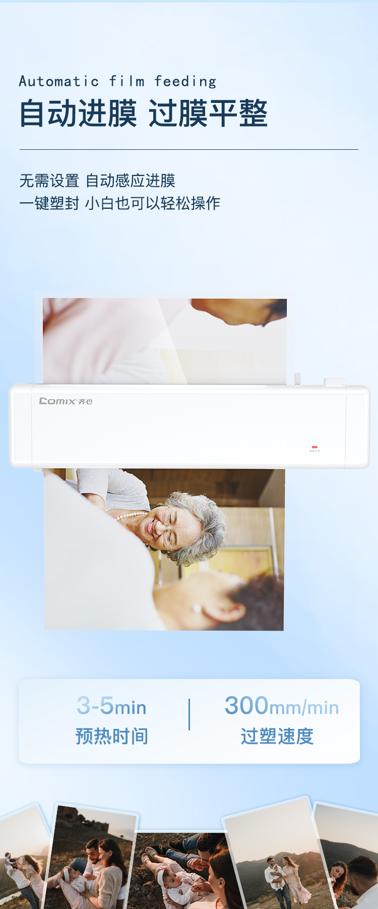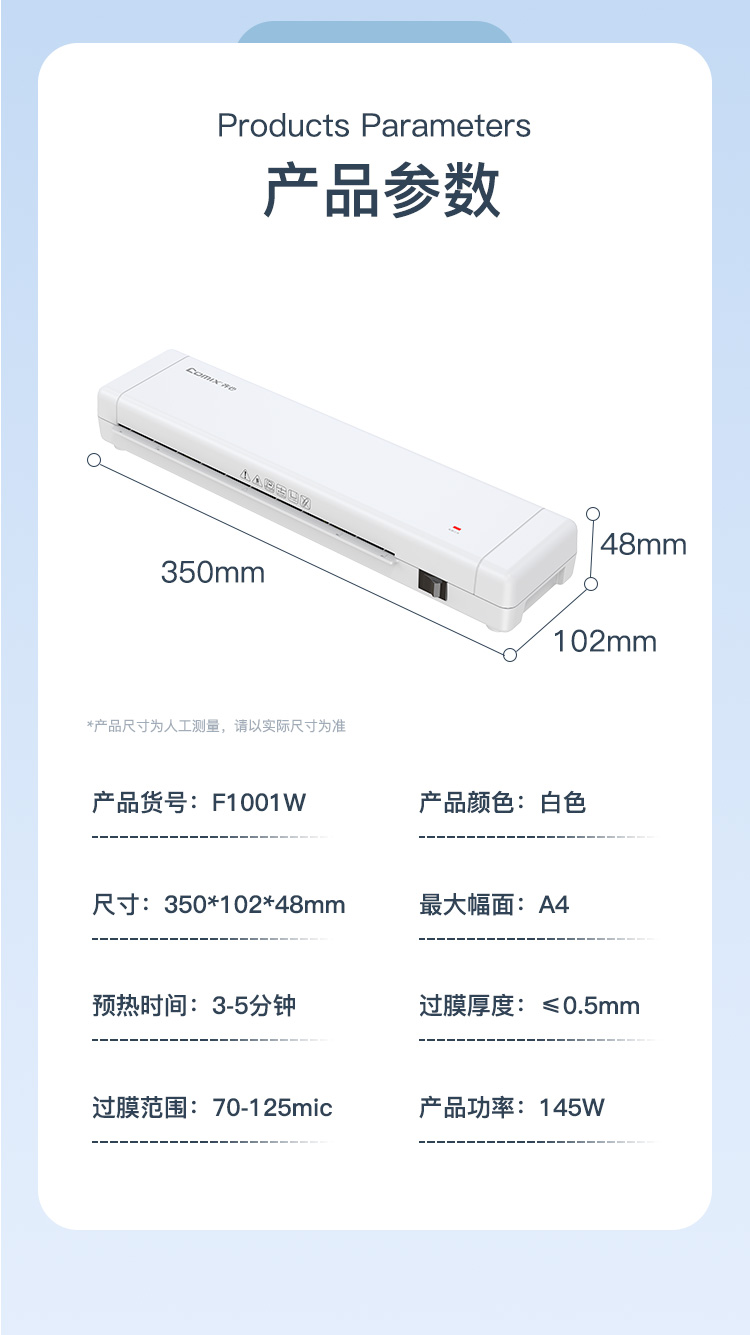 齐心(COMIX) 小型过塑机 F1001W 350*120*48mm 白色(单位:台)