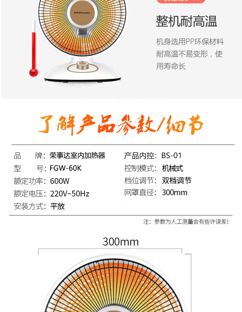 荣事达(Royalstar) 家用取暖器小太阳取暖 FGW-60K 600W 白色(单位:台)