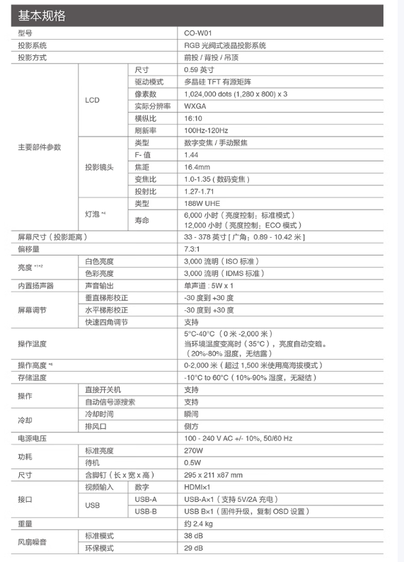 爱普生(EPSON) 投影仪含(100英寸电动幕布+上门安装) CO-W01 3000流明 白色(单位:套)