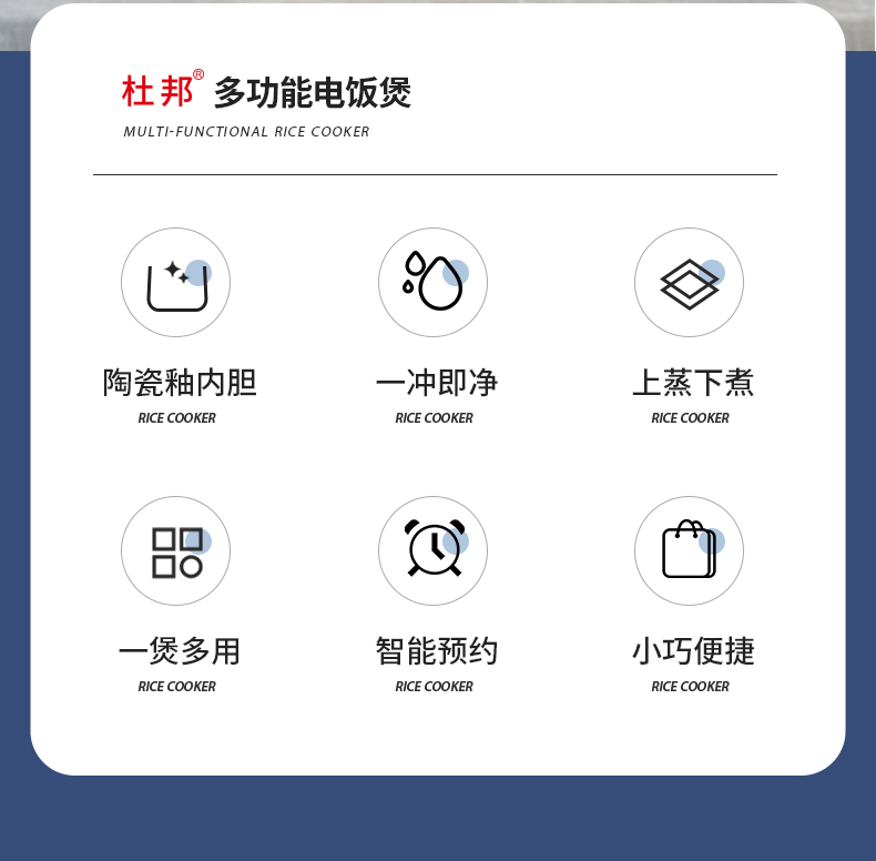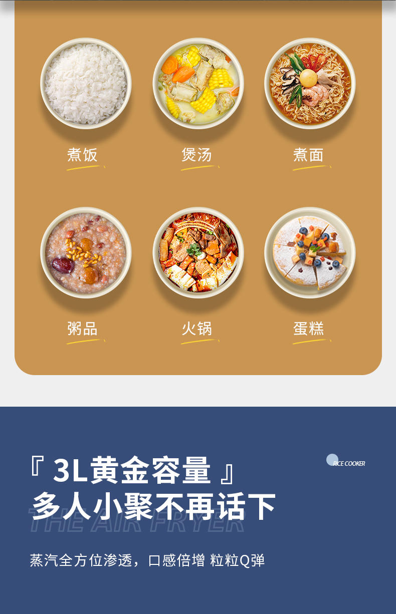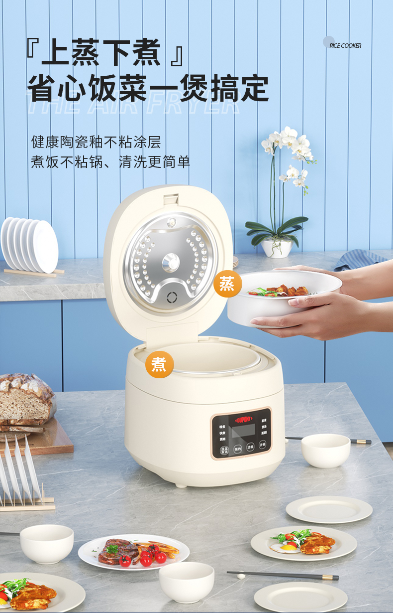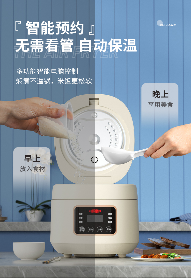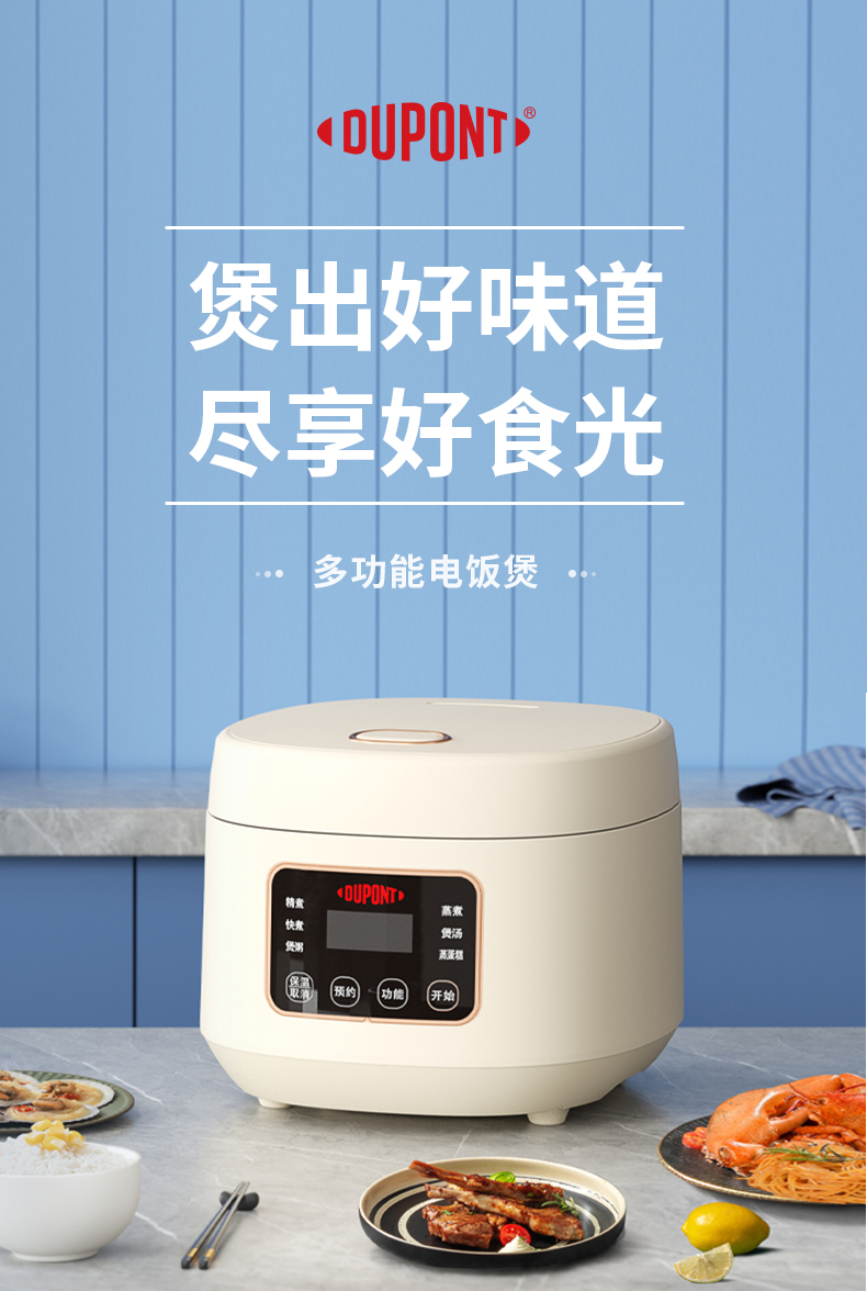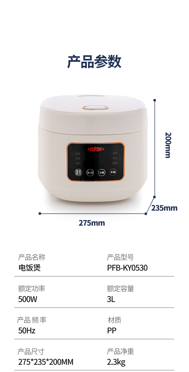 杜邦DUPONT智能电饭煲3L白色 智能预约煮饭煲汤煮粥一煲多用PFB-KY0530(台) 本白色