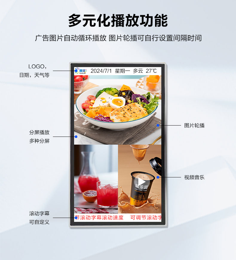 酷彩商显 CXC75TD 商用显示器室内高清壁挂广告机显示屏75英寸多功能一体机液晶显示屏