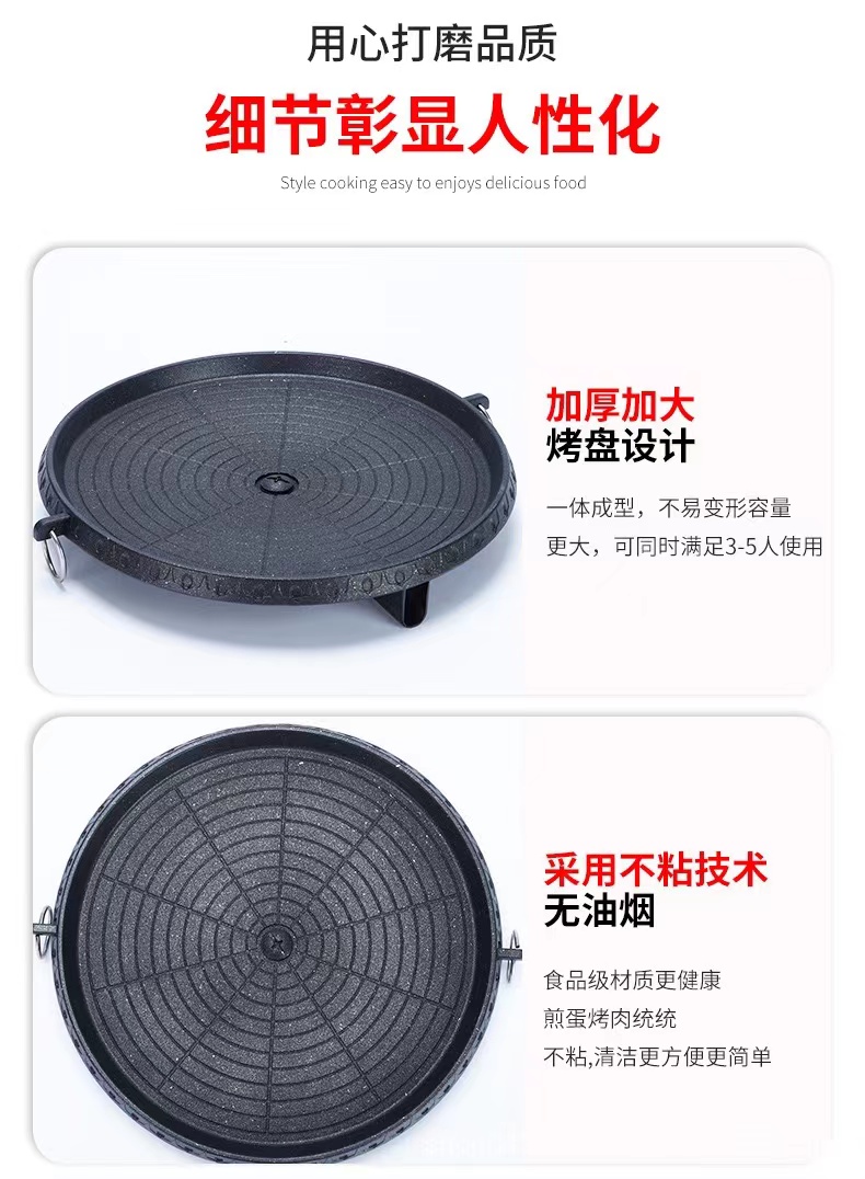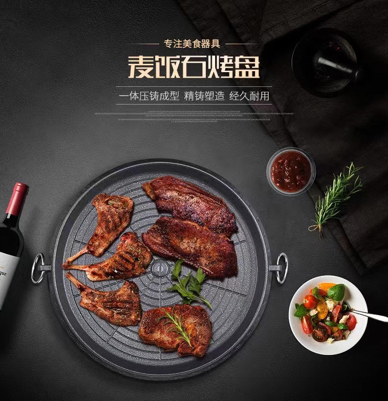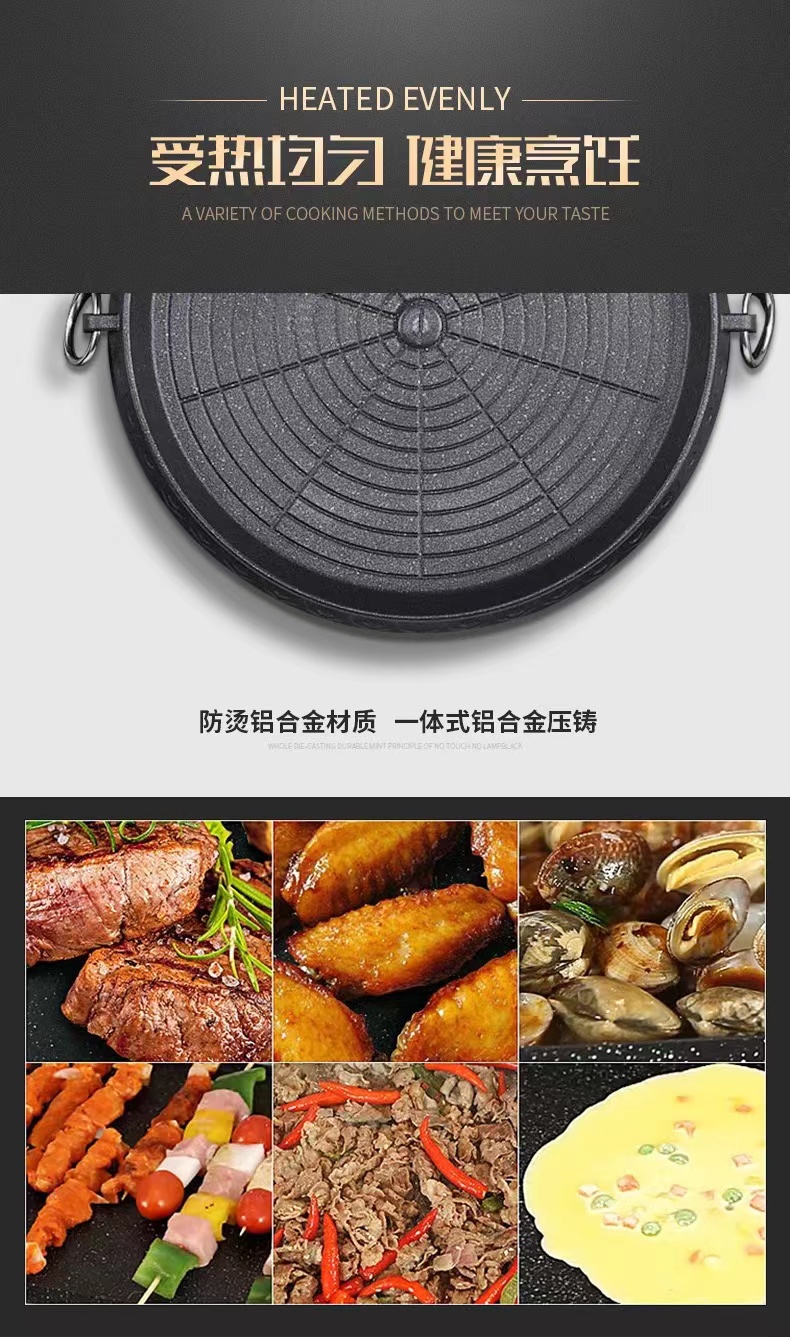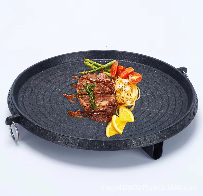 卡式炉烤盘麦饭石涂层便捷家用户外不粘烤肉盘 圆形麦饭石烤盘 黑色 拿铁色
