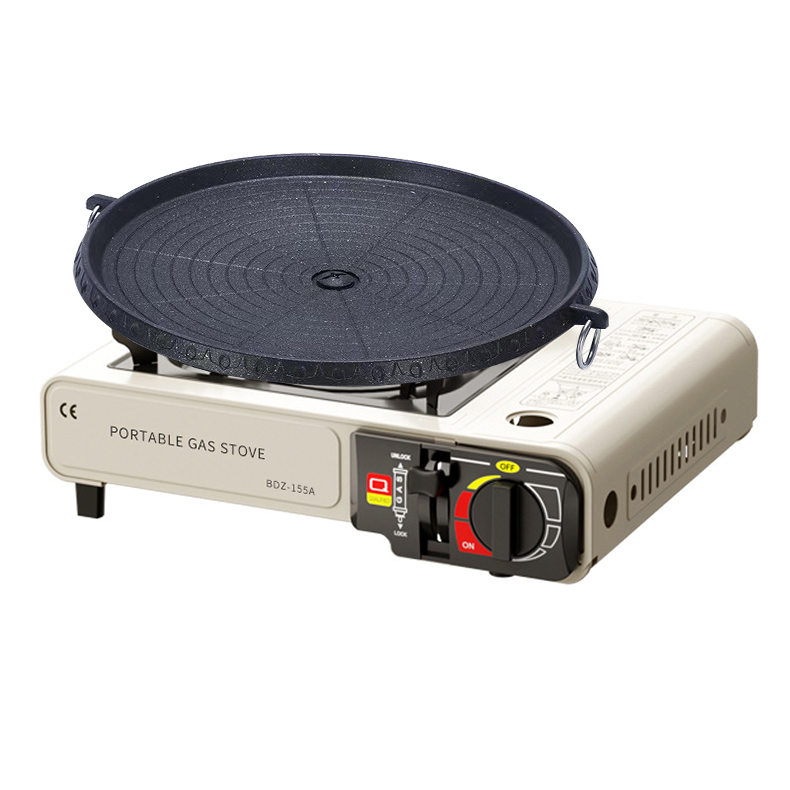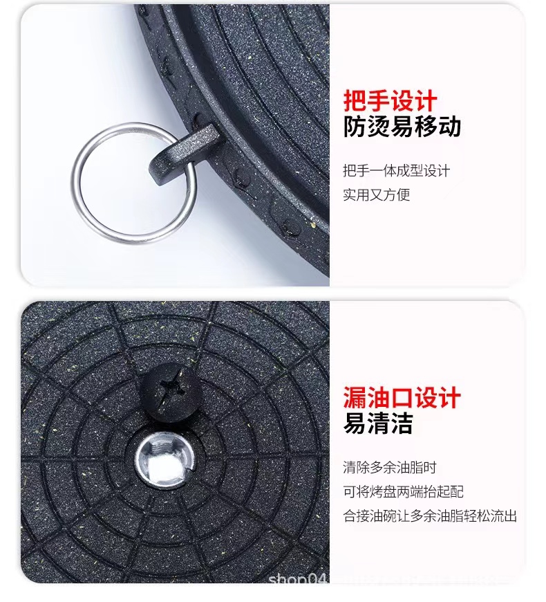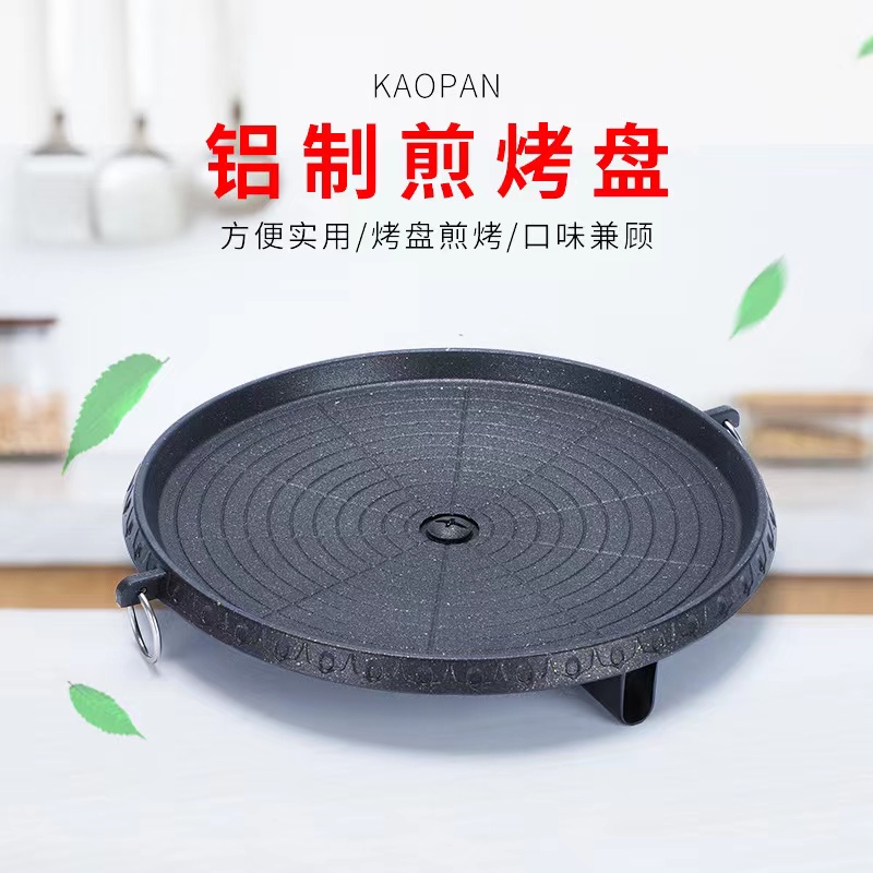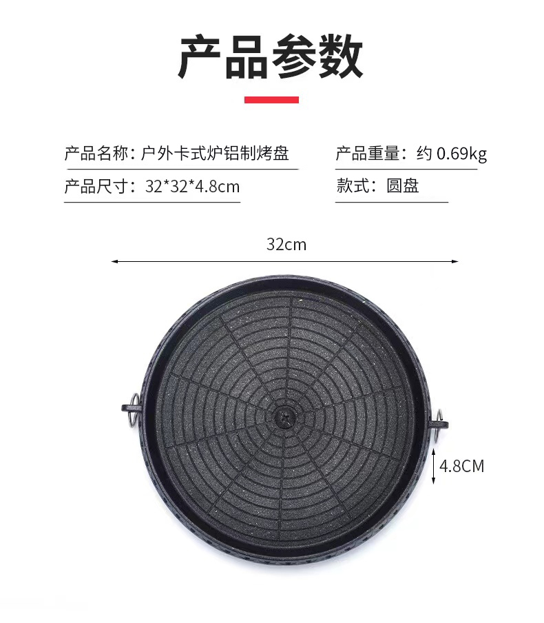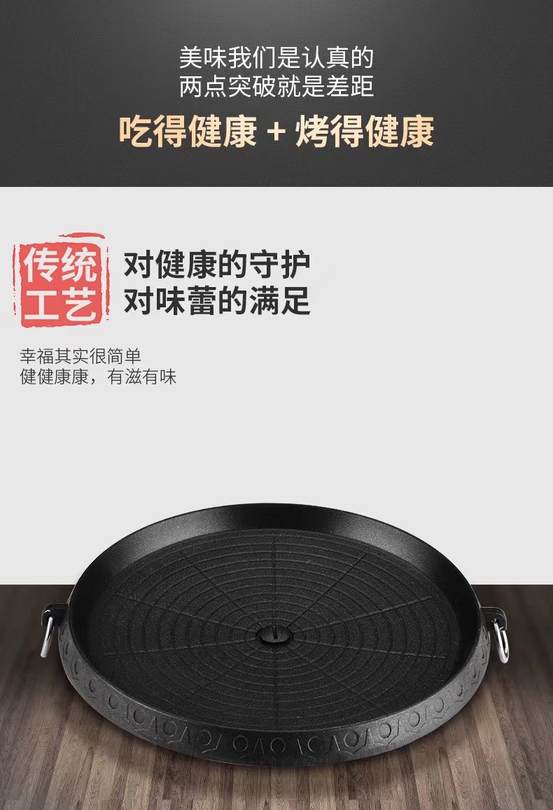 卡式炉烤盘麦饭石涂层便捷家用户外不粘烤肉盘 圆形麦饭石烤盘 黑色 拿铁色