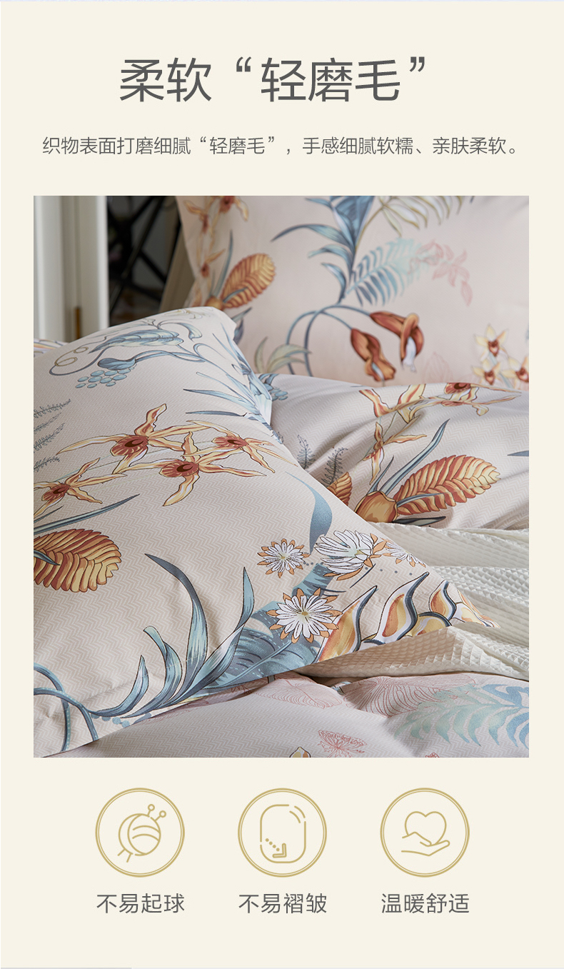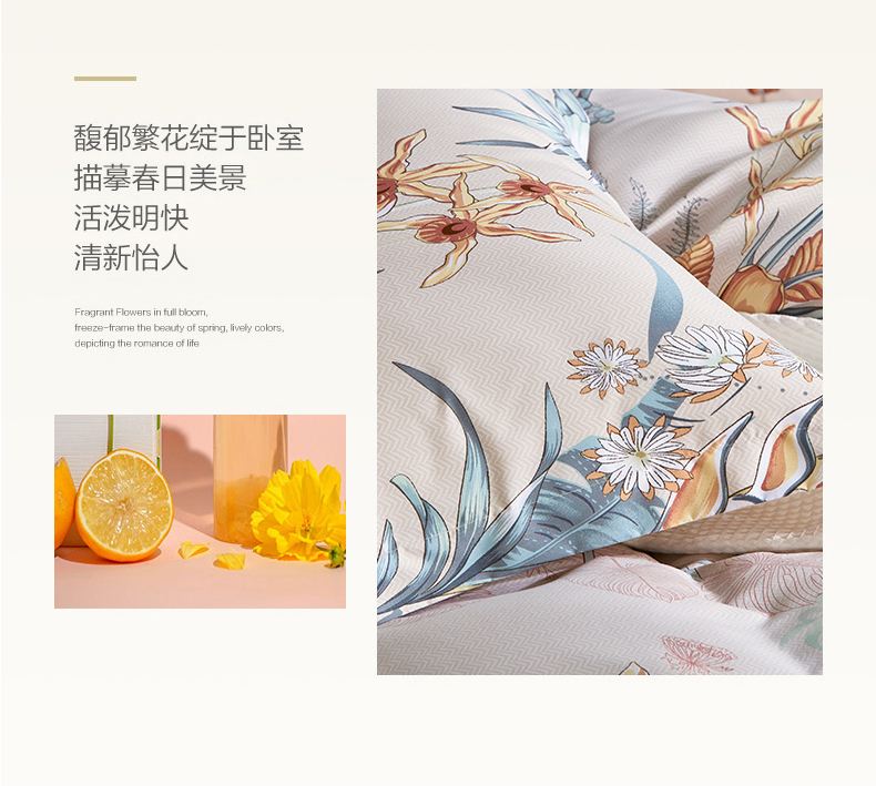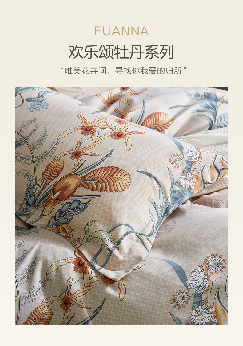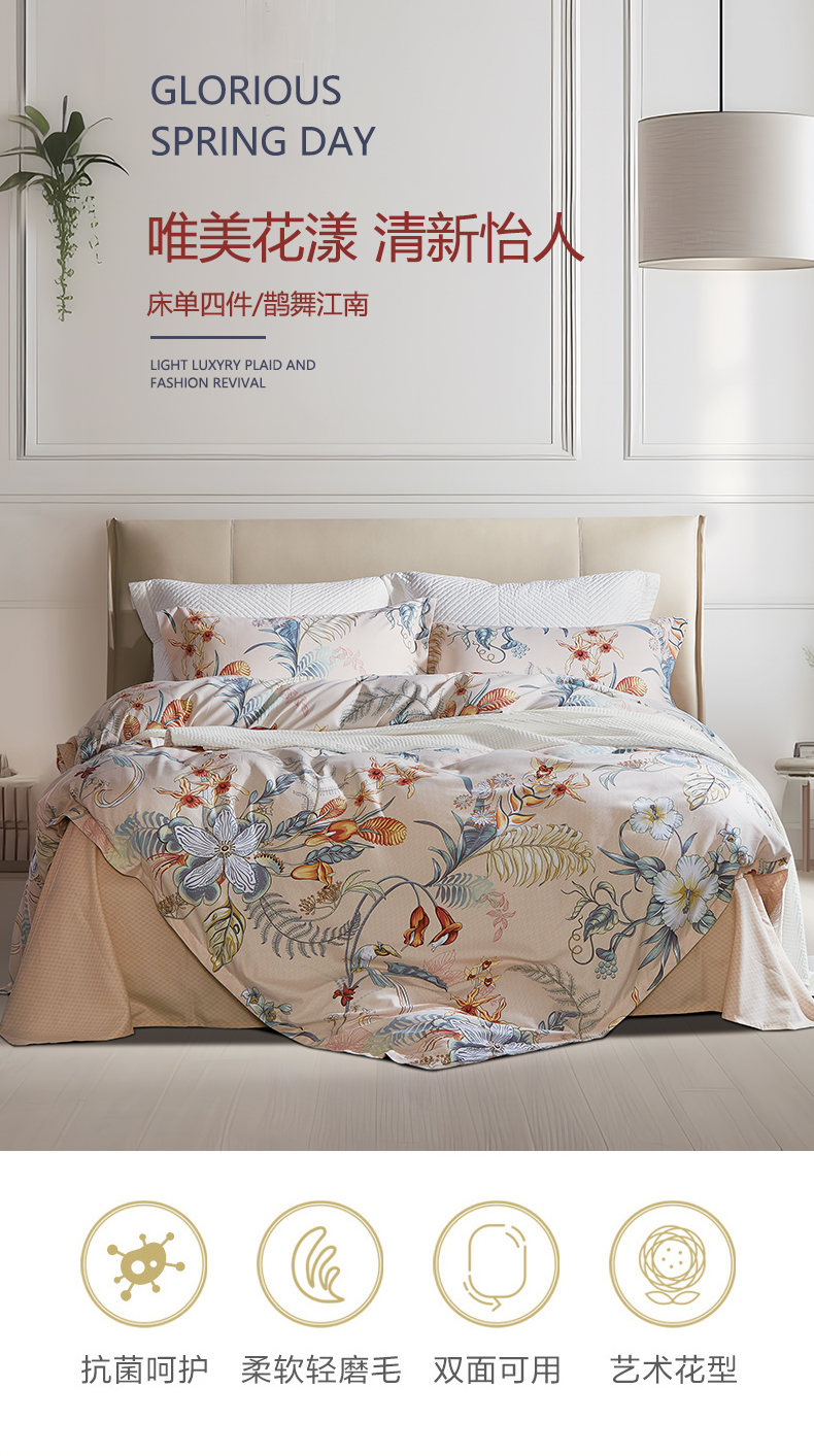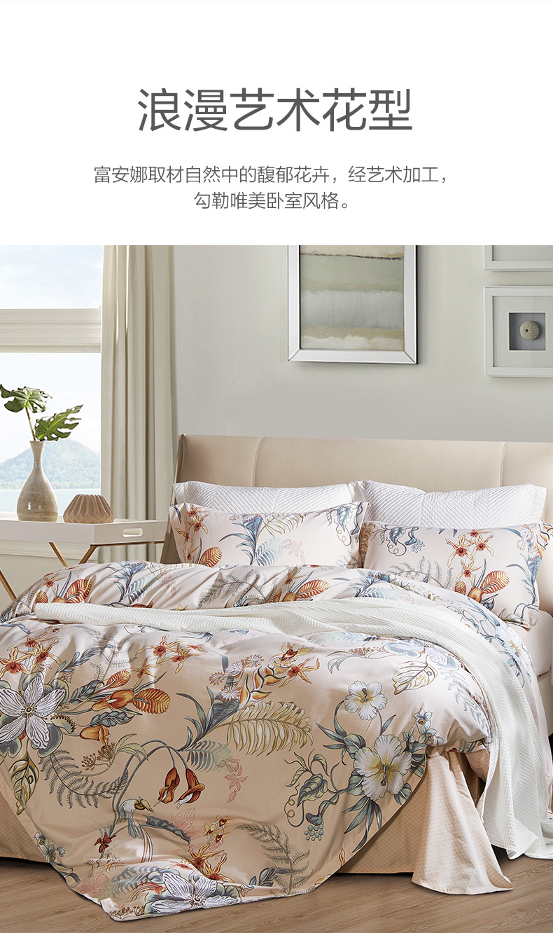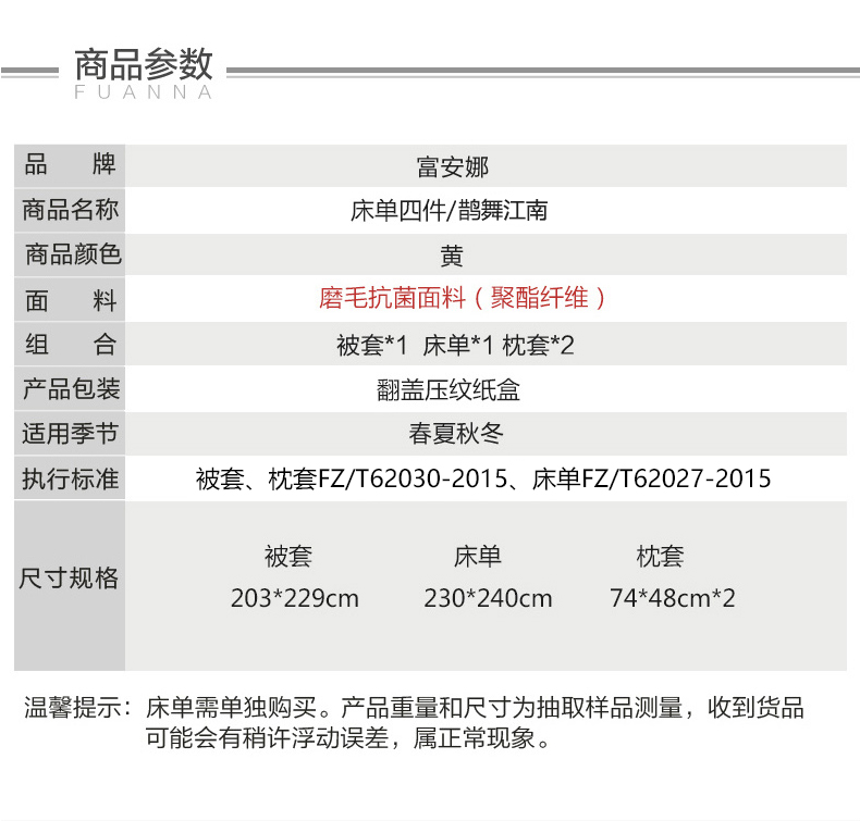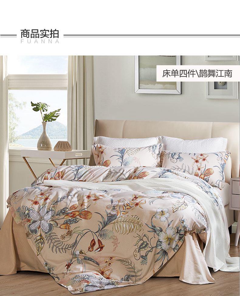 富安娜 713102615床单四件套/鹊舞江南203*229cm 黄色