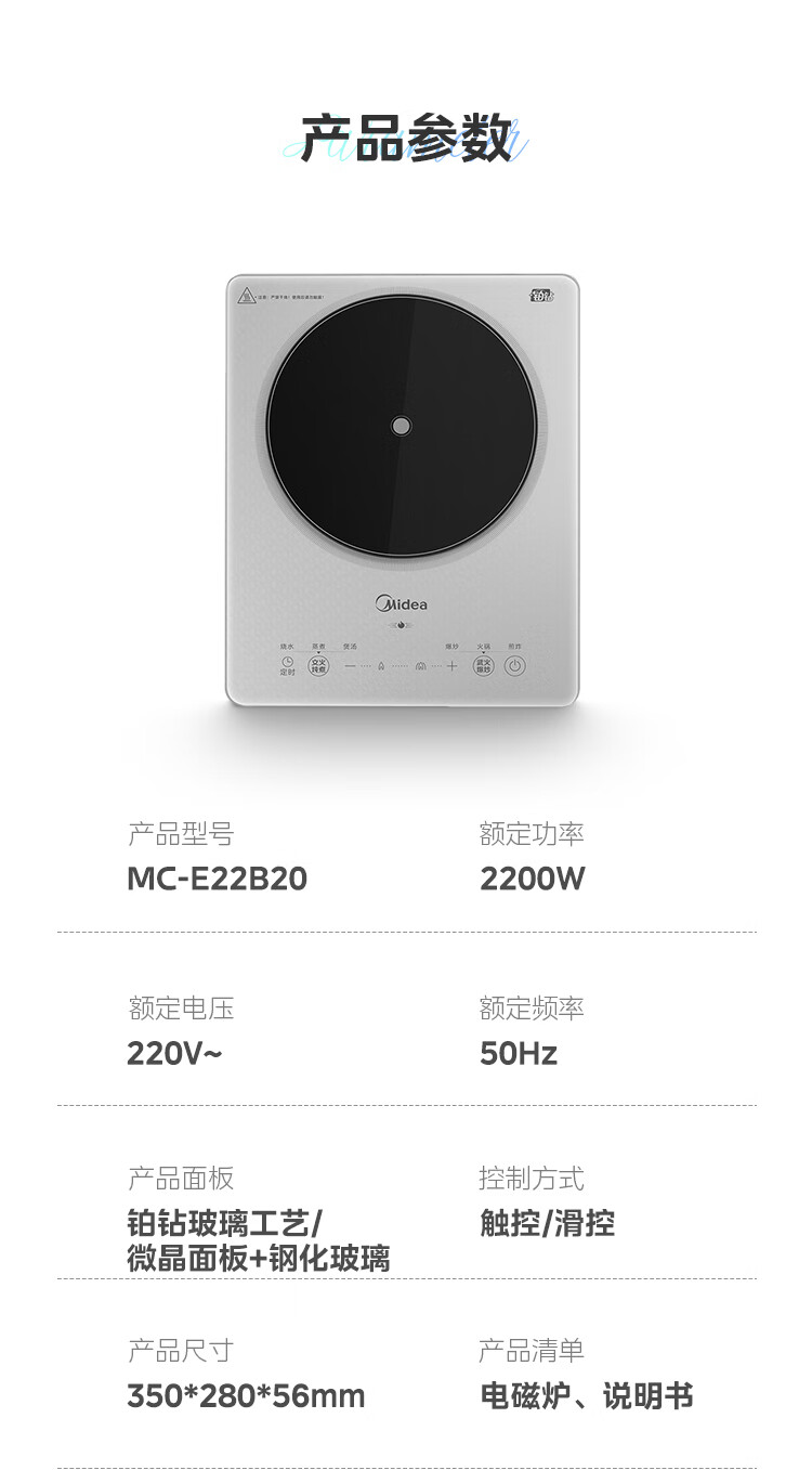 美的(Midea)铂钻系列 电磁炉MC-E22B20(单位:台) 冰川银