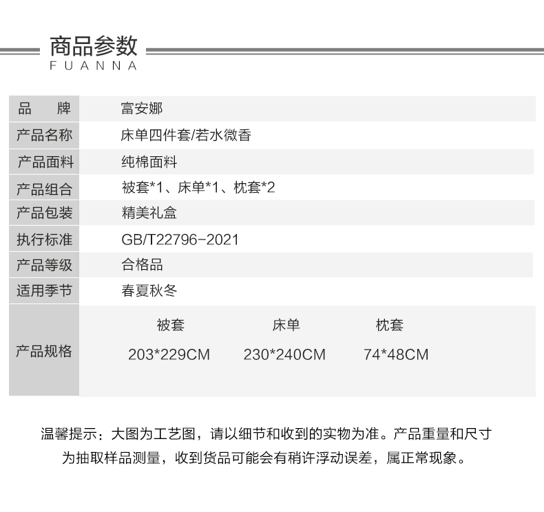富安娜 713102467床单四件套/若水微香203*229cm 若水微香