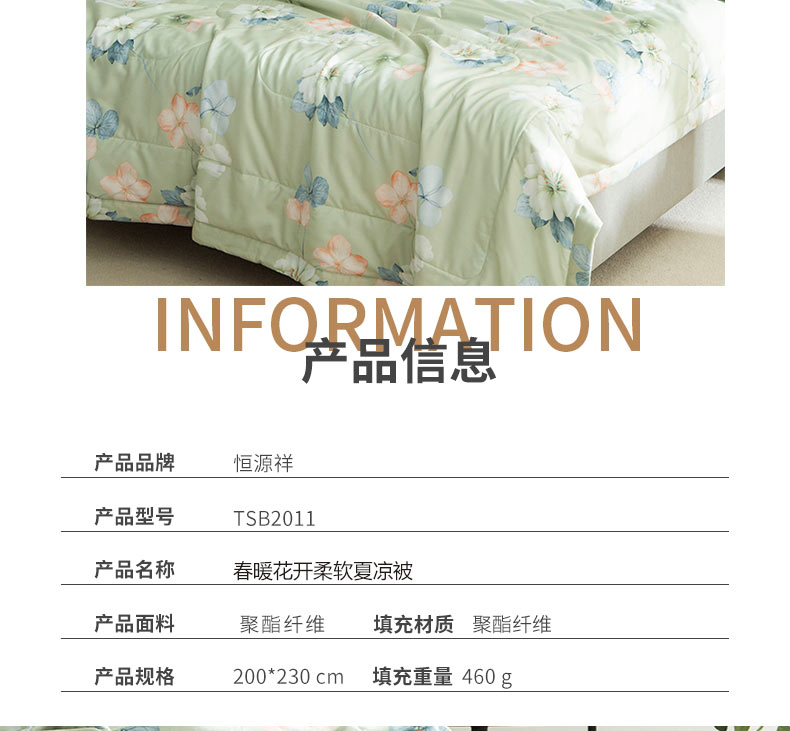恒源祥 TSB2011春暖花开柔软夏凉被200*230cm 自然色 200*230cm