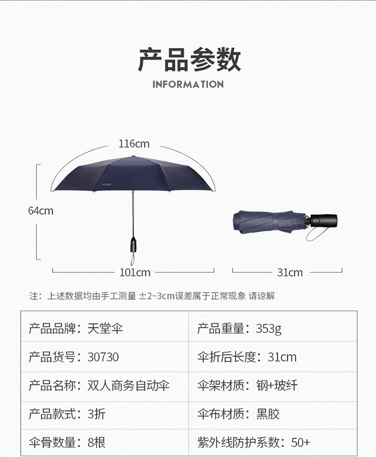 天堂 全自动折叠太阳伞 30730E 8骨 奶酪色(单位:把)