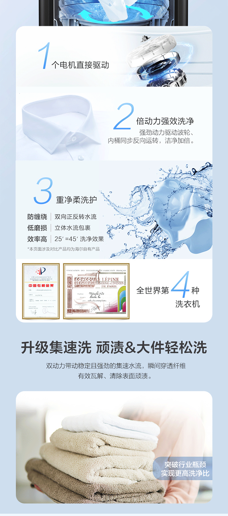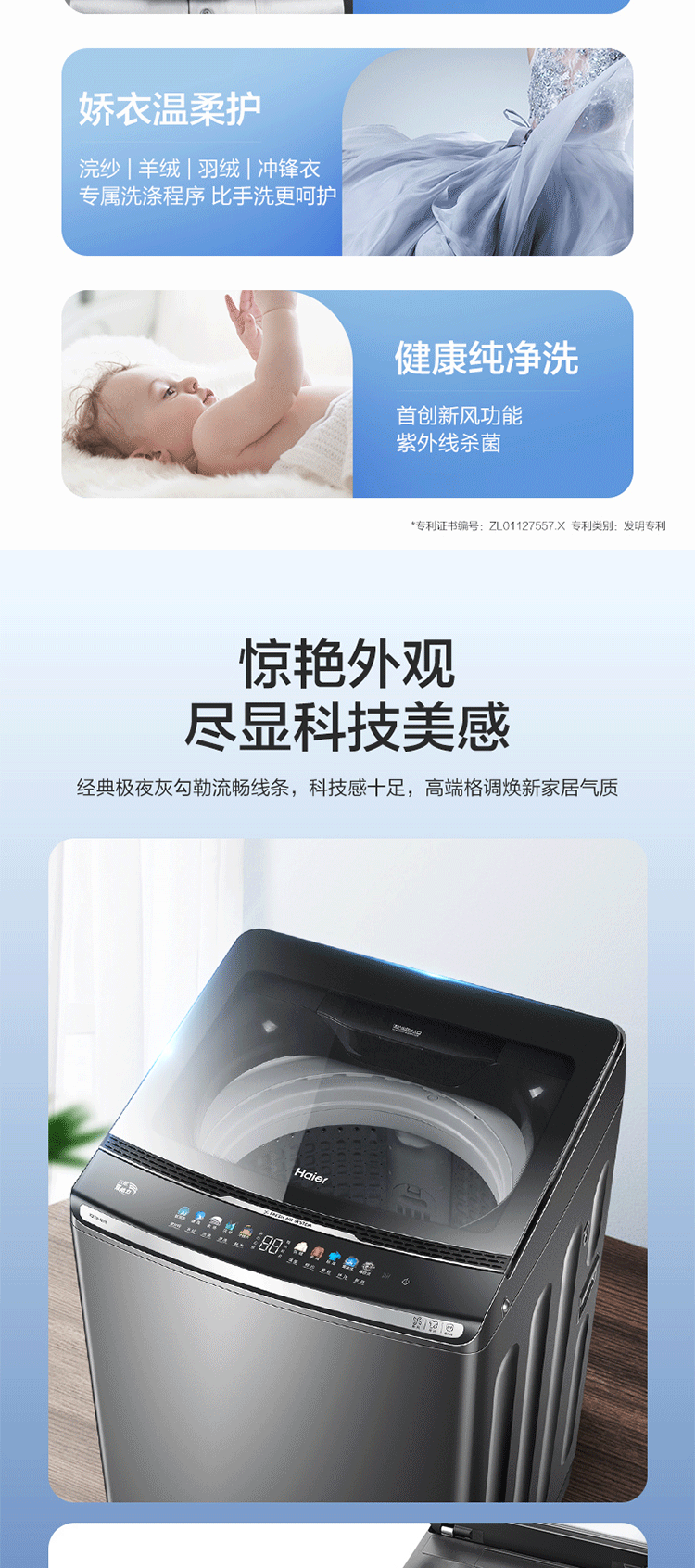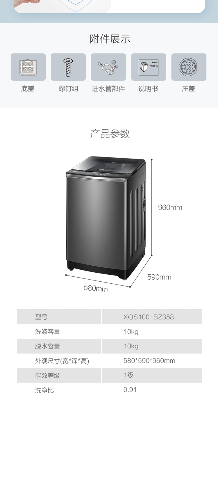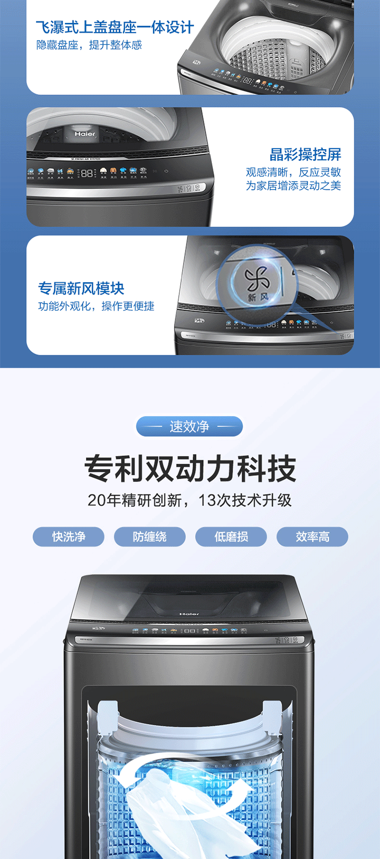 海尔(Haier)洗衣机全自动波轮10公斤双动力防缠绕直驱变频大容量智能家用洗衣机 星蕴银