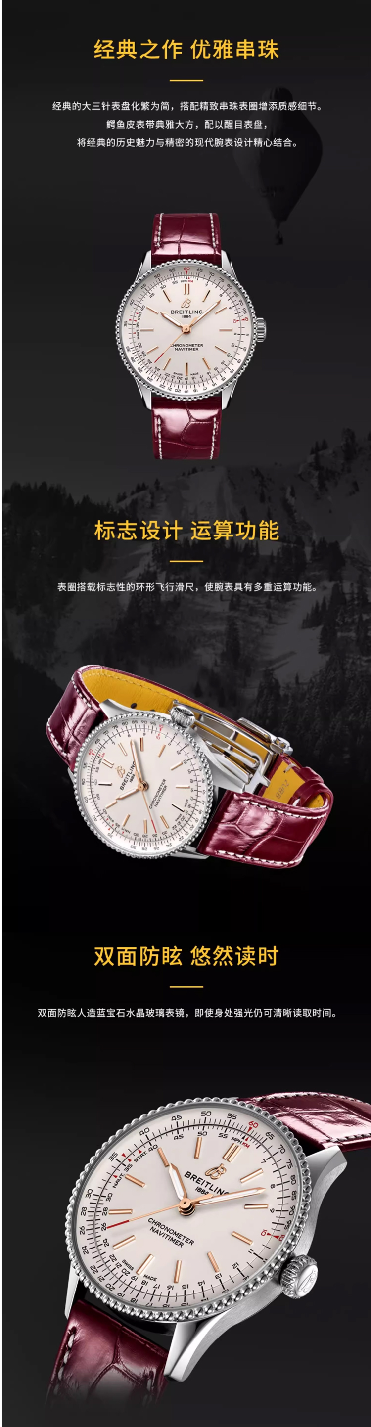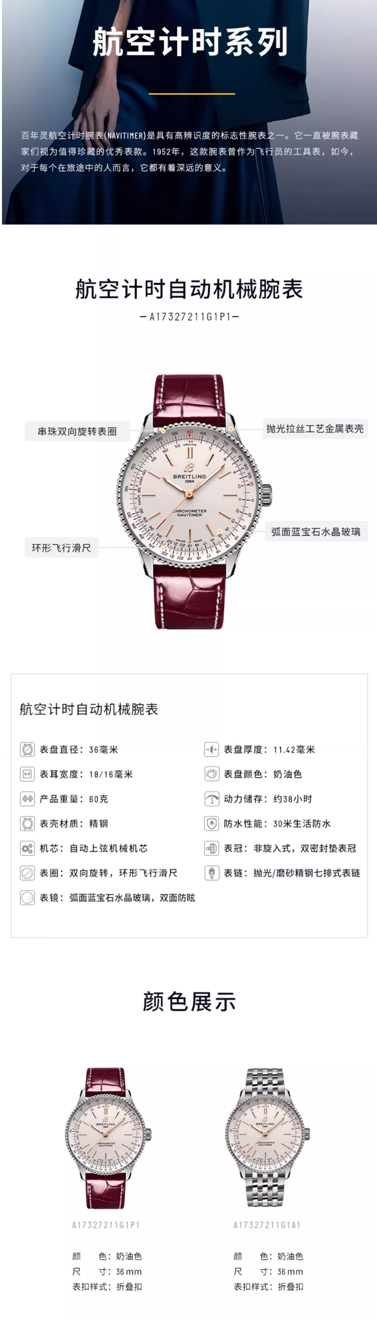 百年灵(BREITLING)航空计时系列36机械女表 A17327211G1P1(单位:块) 酒红
