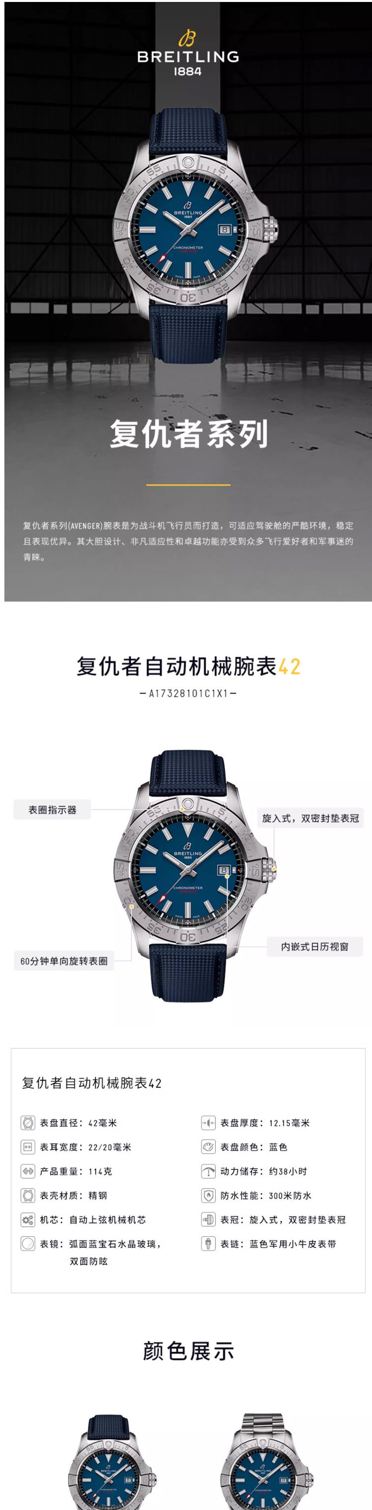 百年灵(BREITLING)复仇者系列42机械男表 A17328101C1X1(单位:块) 蓝色